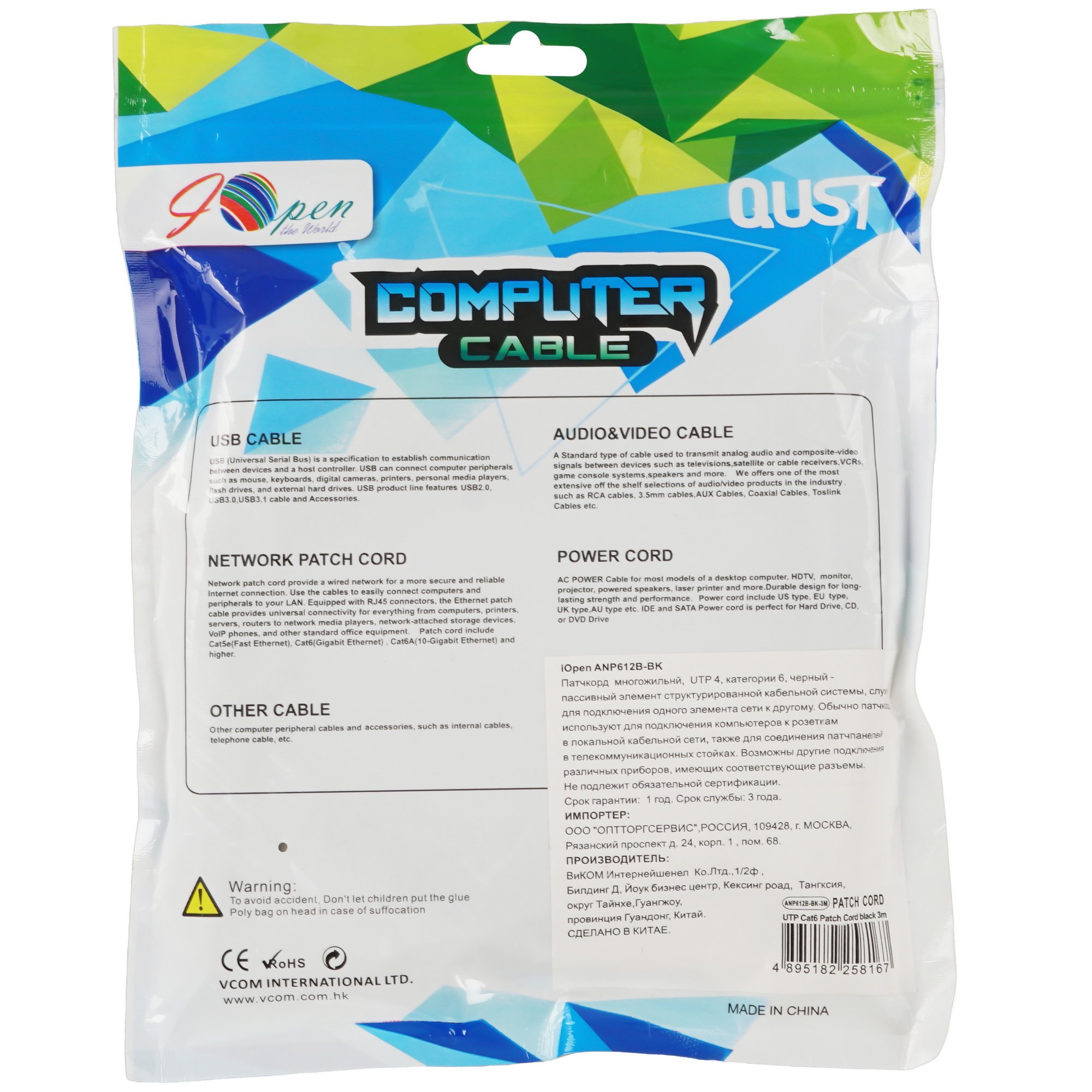 Патч-корд iOpen ANP612B-BK-3M произведен с использованием витой пары U/UTP категории 6 и поддерживает скорость передачи данных до 1 Гбит/с. Длина кабеля – 3 м.