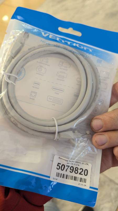 Длина патч-корда Vention IBEBL – 10 м. Защиту изделия от внешних воздействий обеспечивает изоляция из поливинилхлорида.