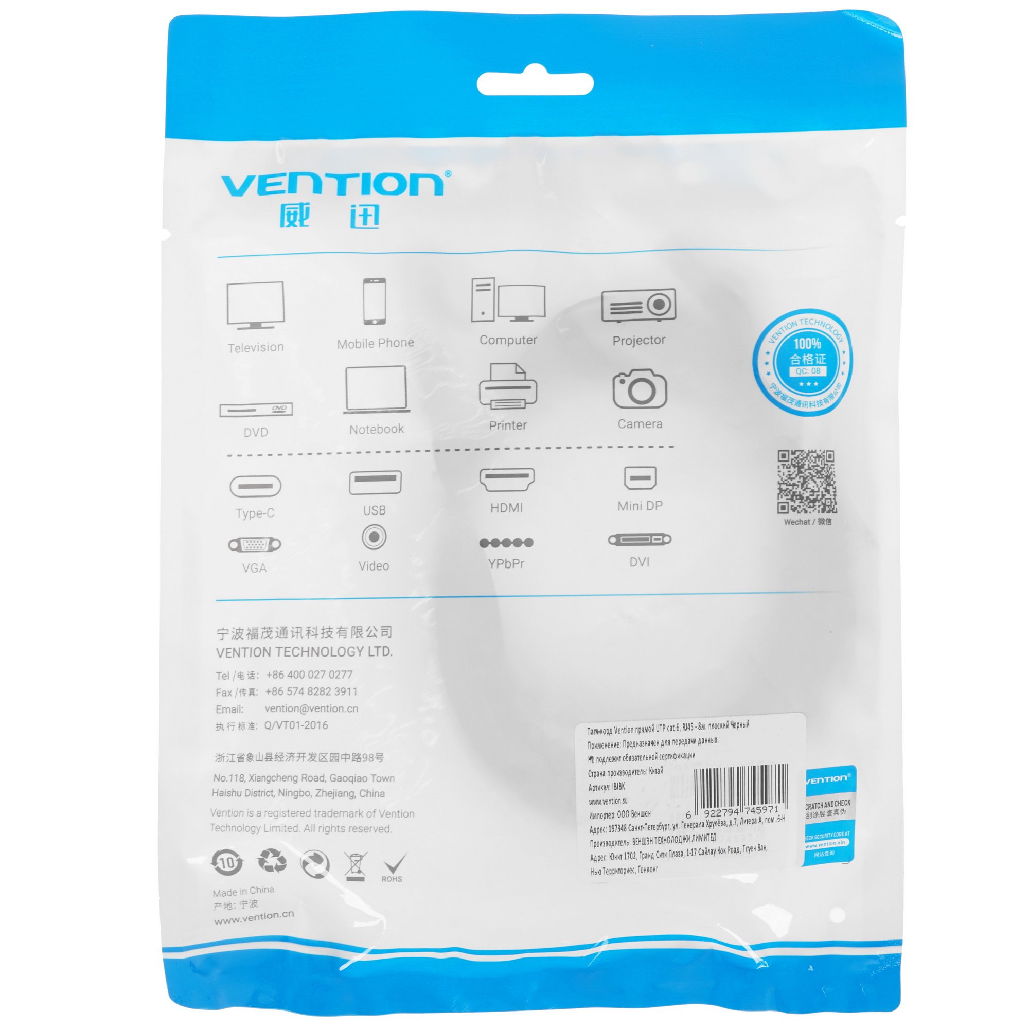 Патч-корд Vention прямой UTP cat.6, RJ45 - 8м. плоский черный