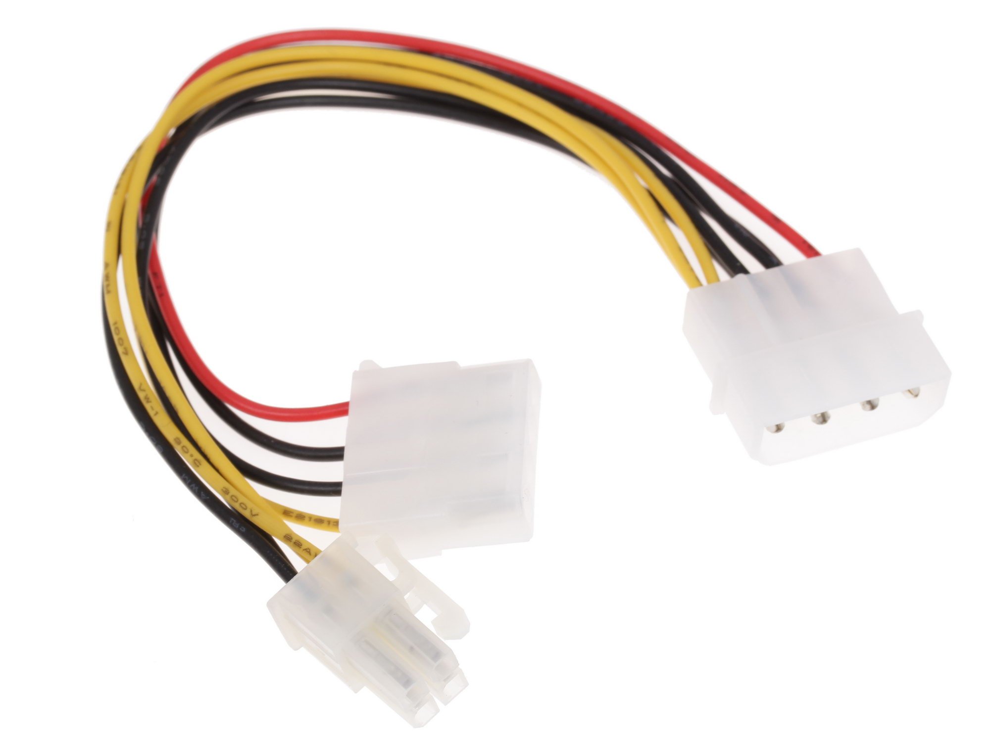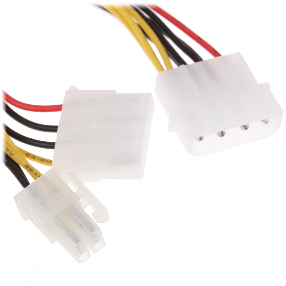 Molex-\>Molex+4-pin обладает стандартизированной маркировкой проводов и кабелем подключения длиной 0.15 м. Плюсами данного переходника являются высокое качество исполнения, а также легкость монтажа.
