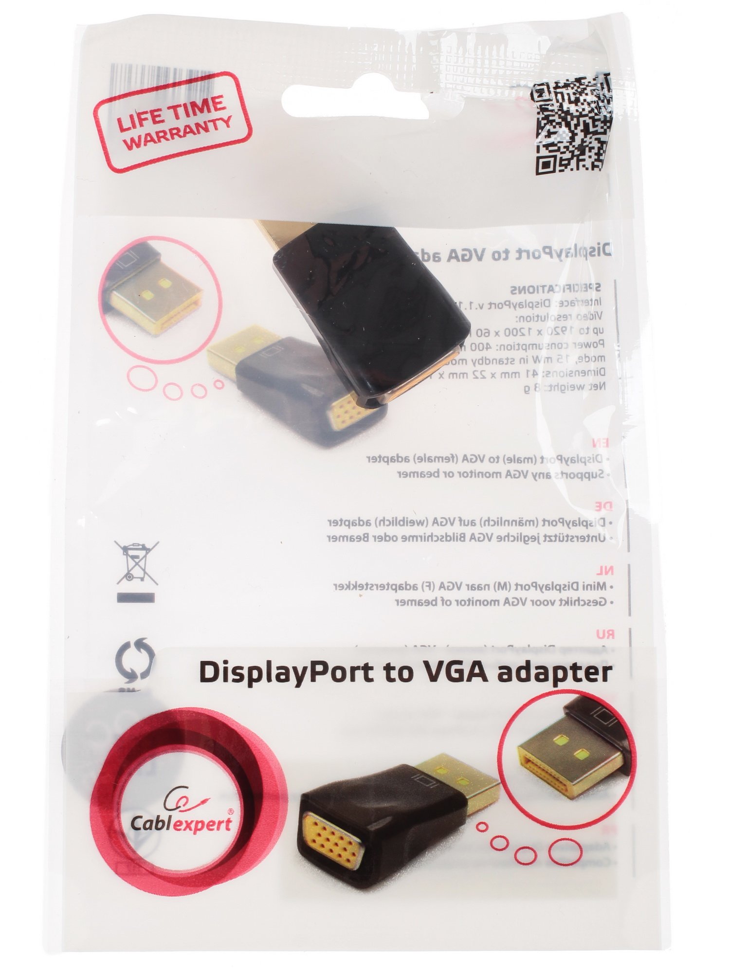 Корпус этого изделия выполнен из пластика. Он прочный и исключает дальнейшее повреждение важных элементов. Переходник Cablexpert DisplayPort - SVGA прост в установке, подключение займет не больше минуты.