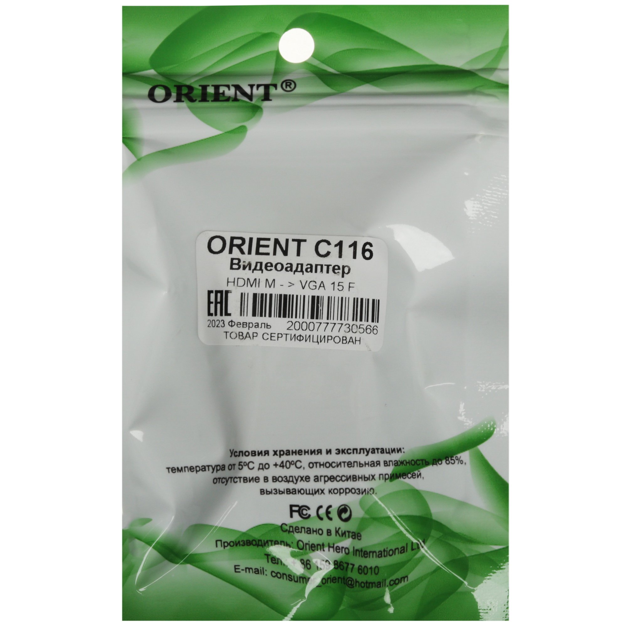 Переходник Orient HDMI – VGA – это аксессуар для подключения устройств с разъемом HDMI к мониторам или проекторам с интерфейсом VGA. Он обеспечивает преобразование цифрового сигнала HDMI в аналоговый сигнал VGA, позволяя передавать его с высоким (до 1920x1080 пикс.) разрешением и качеством. Частота кадров при этом достигает 60 Гц.