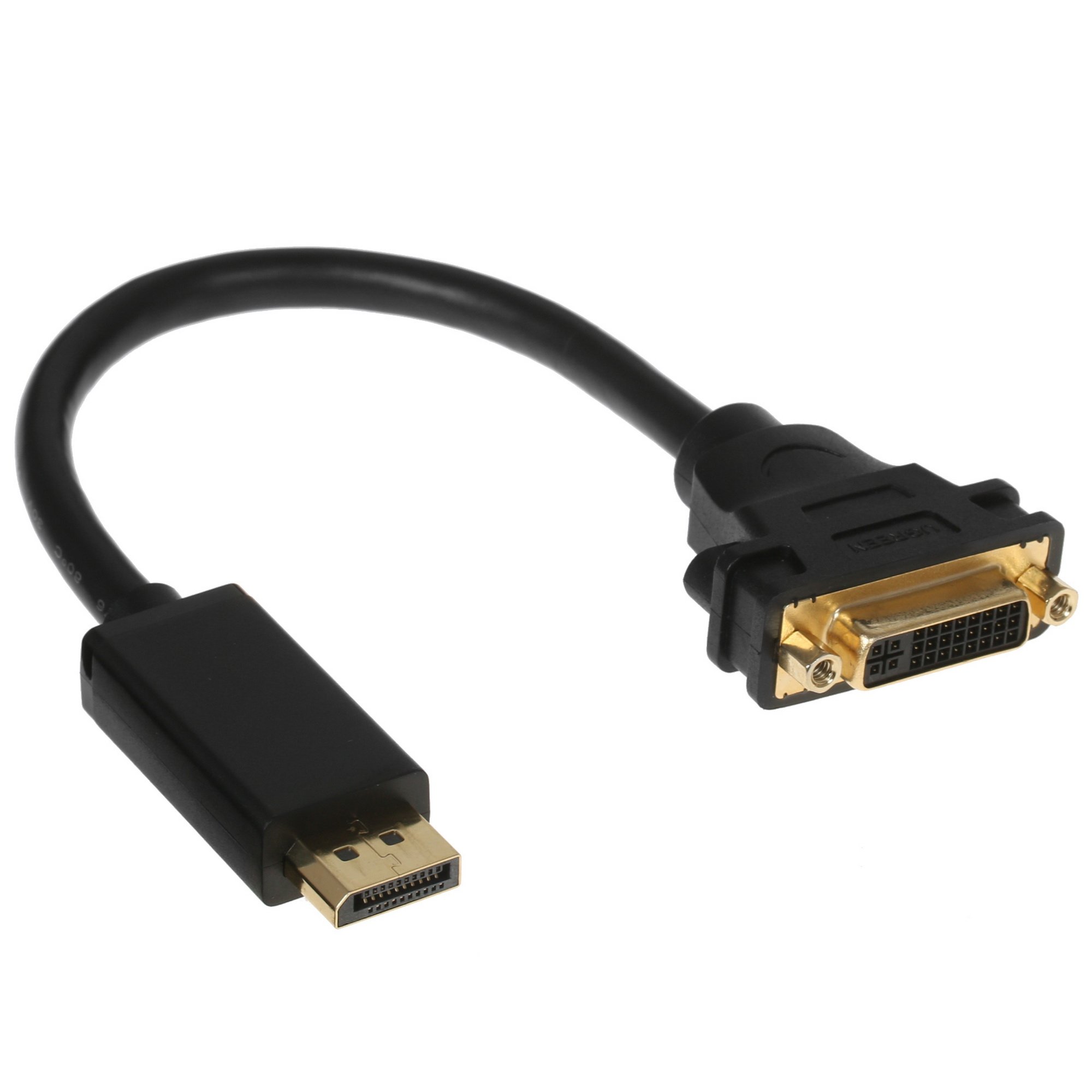 Переходник Ugreen использует короткий кабель: его длина составляет всего 0.15 м. Это позволяет применять адаптер для соединения двух устройств. Переходник предусматривает наличие разъемов DisplayPort и DVI, что позволяет подключать видеокарты, материнские платы с поддержкой встроенного видео, проекторы, мониторы, мультимедиа-плееры и другие устройства.