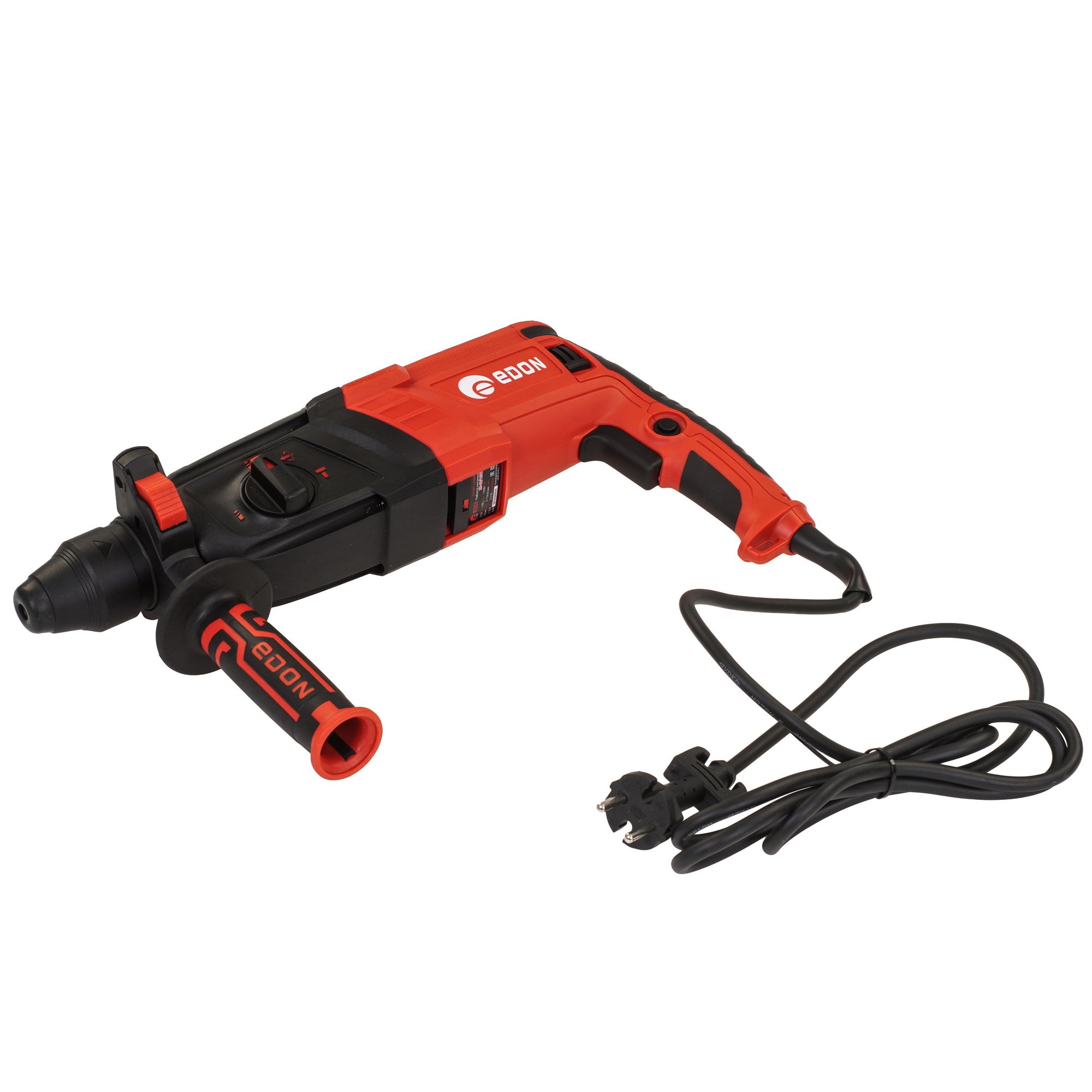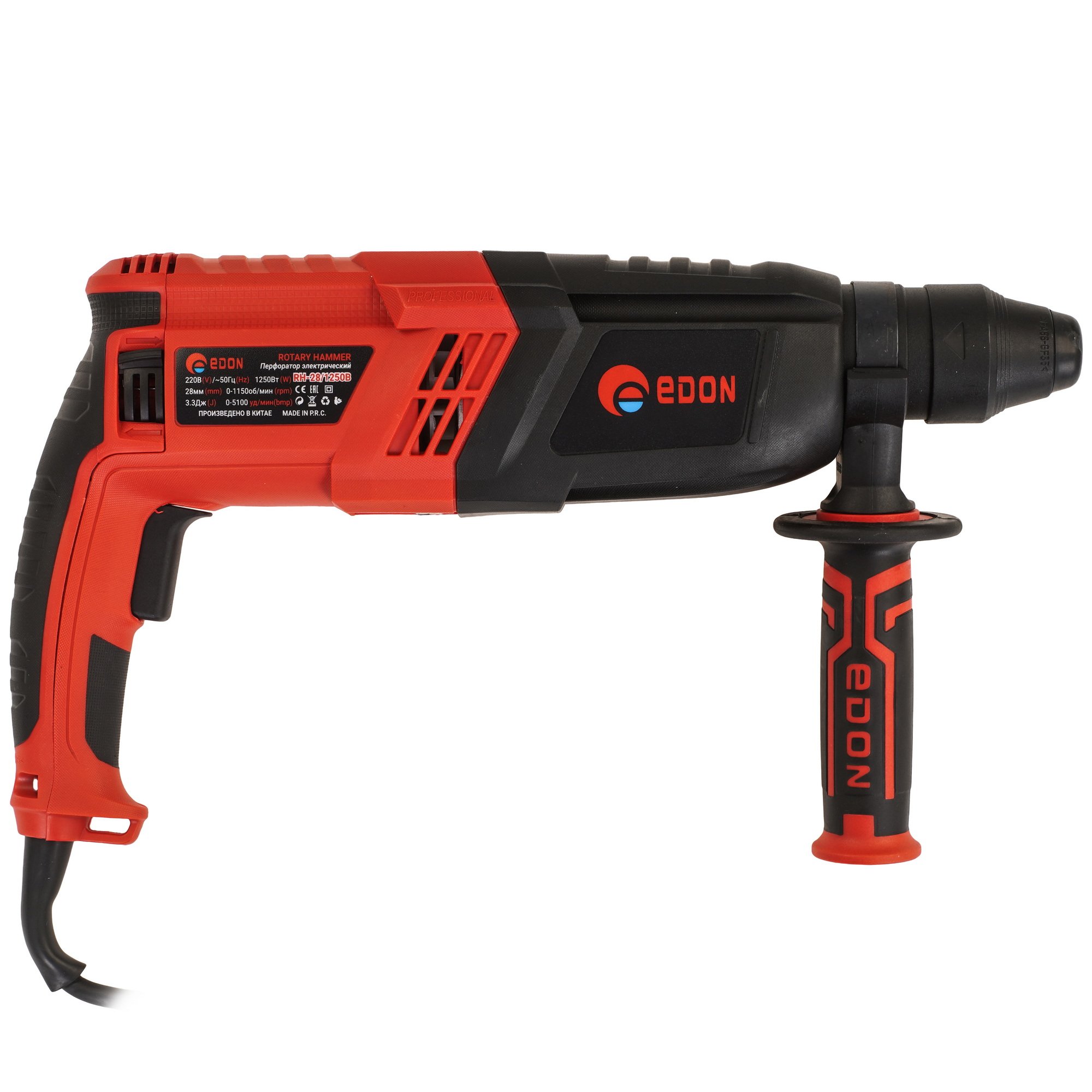 Перфоратор ручной электрический Edon RH-28/1250B среднего класса предназначен как для сверления отверстий в различных материалах, так и для штробления в режиме удара, идеально подходит для монтажа, там где длительное время оператору необходимо держать в руках инструмент. Для удобства работы в ограниченных пространствах в режиме удара, есть режим расцепляющий патрон инструмента и редуктор, что позволяет установить рабочий инструмент (долото, штробник) под необходимым углом, после чего перевести в режим удара и комфортно для оператора продолжить работу. Реверс выполнен на щеточном узле электродвигателя положительно влияет на ресурс перфоратора и исключает возможность случайного переключения. Наличие предохранительной муфты позволяет избежать травм при заклинивании рабочего инструмента. Наличие дополнительной системы охлаждения ствола и редуктора позволяет значительно увеличить период непрерывной работы. Шарнирный бандаж предотвращает преждевременный износ и повреждение шнура питания.