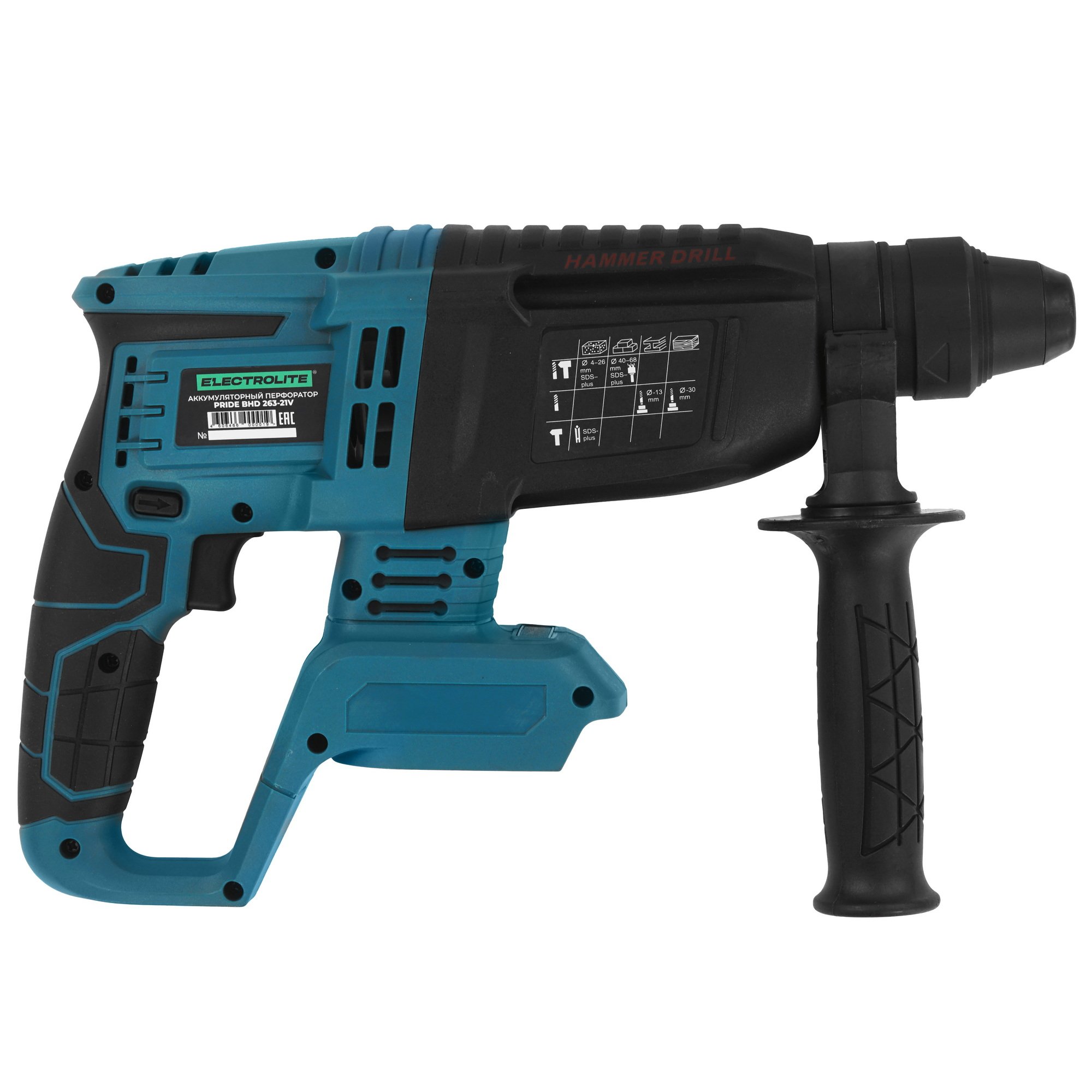 Аккумуляторный перфоратор ELECTROLITE PRIDE BHD 263 21V на единой аккумуляторной платформе. Перфоратор незаменим не только в случае отсутствия возможности подключения к сети электропитания, а также при работе на высоте (монтаж гардин и приборов освещения, вентиляции и другого оборудования в помещениях с высокими потолками, например, двусветных, в работе промальпинистов на наружних стенах), словом, везде, где шнур питания является дополнительной помехой. Даже при обычной работе в помещении аккумуляторный перфоратор значительно удобнее сетевого инструмента, у него отсутствует сетевой шнур, который ограничивает подвижность.