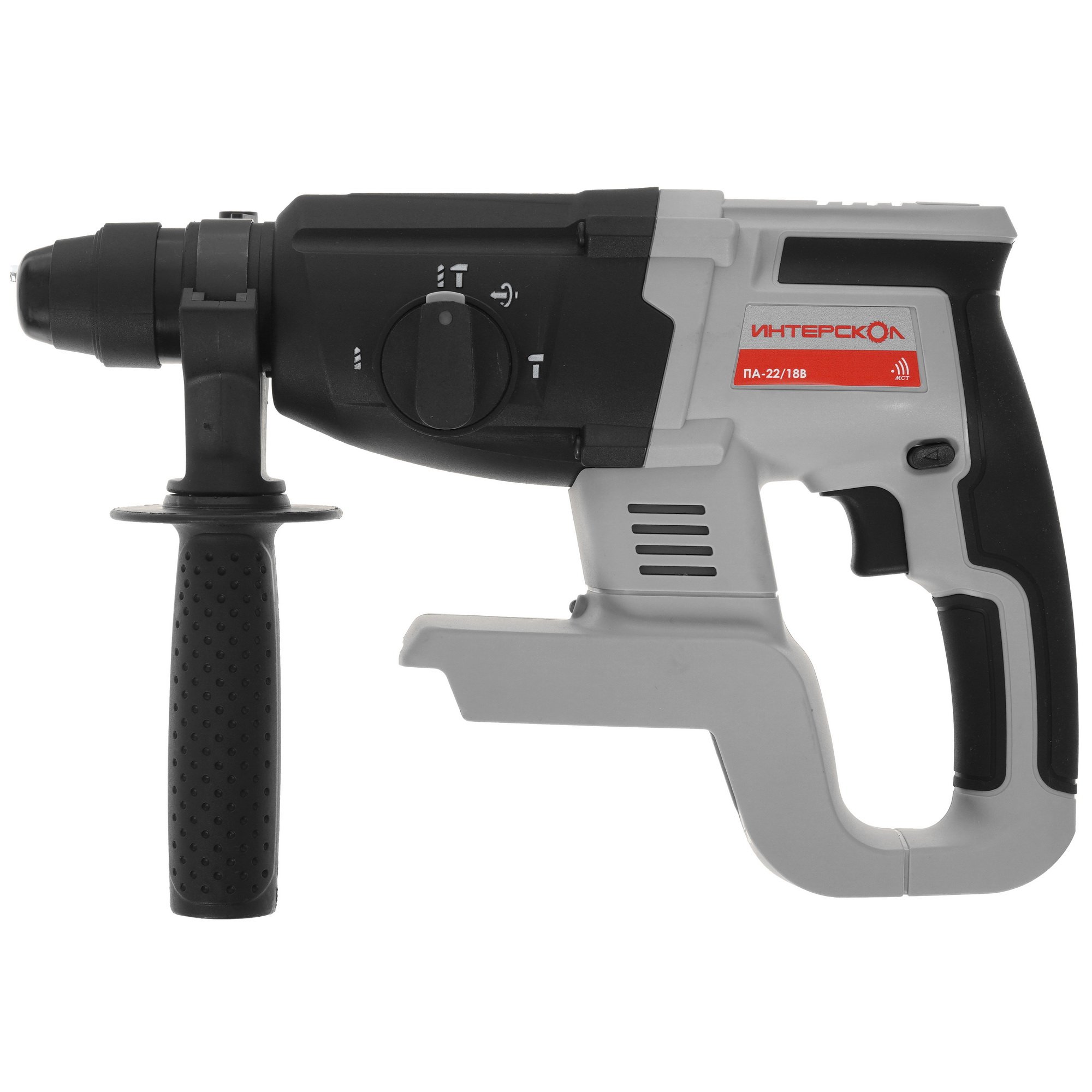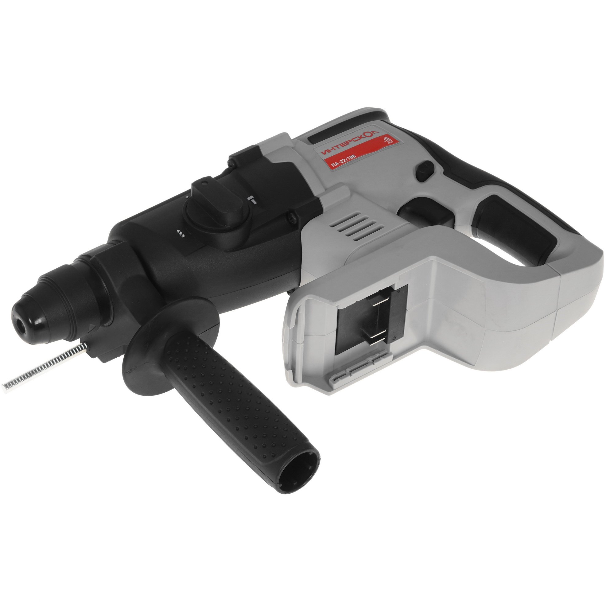 Перфоратор Интерскол ПА-22/18В поддерживает систему реверса, которая позволит извлечь из поверхности застрявшую оснастку. Необходимый для работы устройства аккумулятор не входит в комплект поставки и приобретается отдельно. Модель оснащена патроном SDS-Plus, обеспечивающим универсальную совместимость с различной оснасткой. Уверенному и надежному хвату способствует наличие прорезиненных вставок на рукоятке.