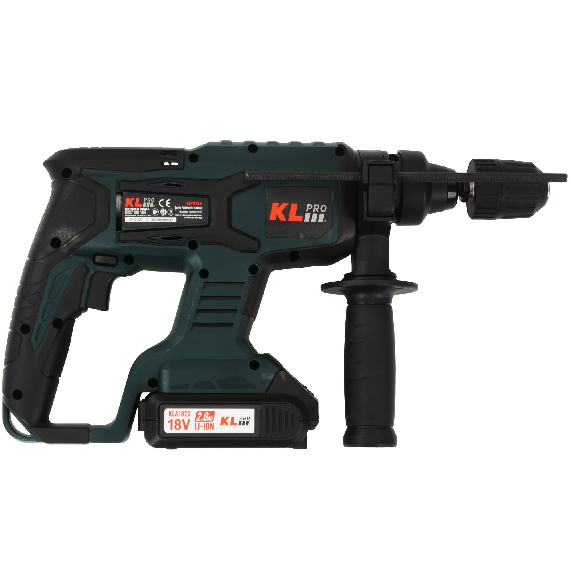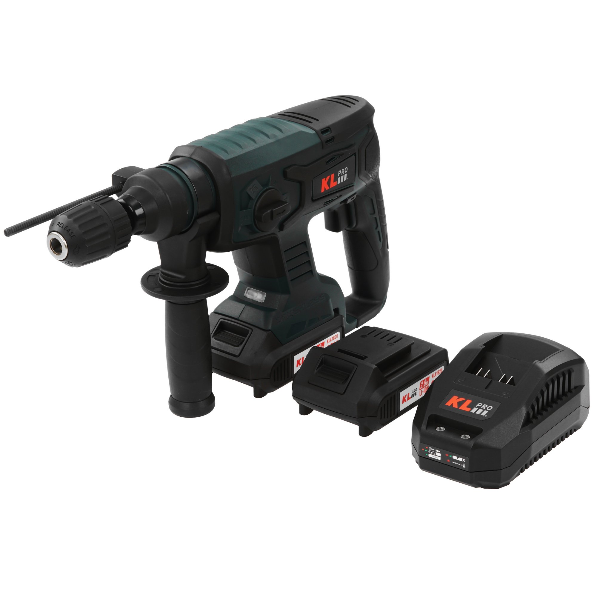 KLPRO KLPM18B-20 поддерживает регулировку скорости до 1400 об/мин для лучшего контроля над инструментом при пробивании отверстий различного диаметра. Для настройки скоростного режима используется спусковой крючок. Для легкой замены оснастки модель оснащен патроном SDS-plus. Прорезиненная рукоятка помогает лучше контролировать инструмент весом 3 кг. Покрытие поглощает вибрацию и не позволяет рукам быстро уставать. Перфоратор оснащен 2 Li-Ion-батареями емкостью 5 А·ч. Их можно применять по очереди для повышения времени работы инструмента.