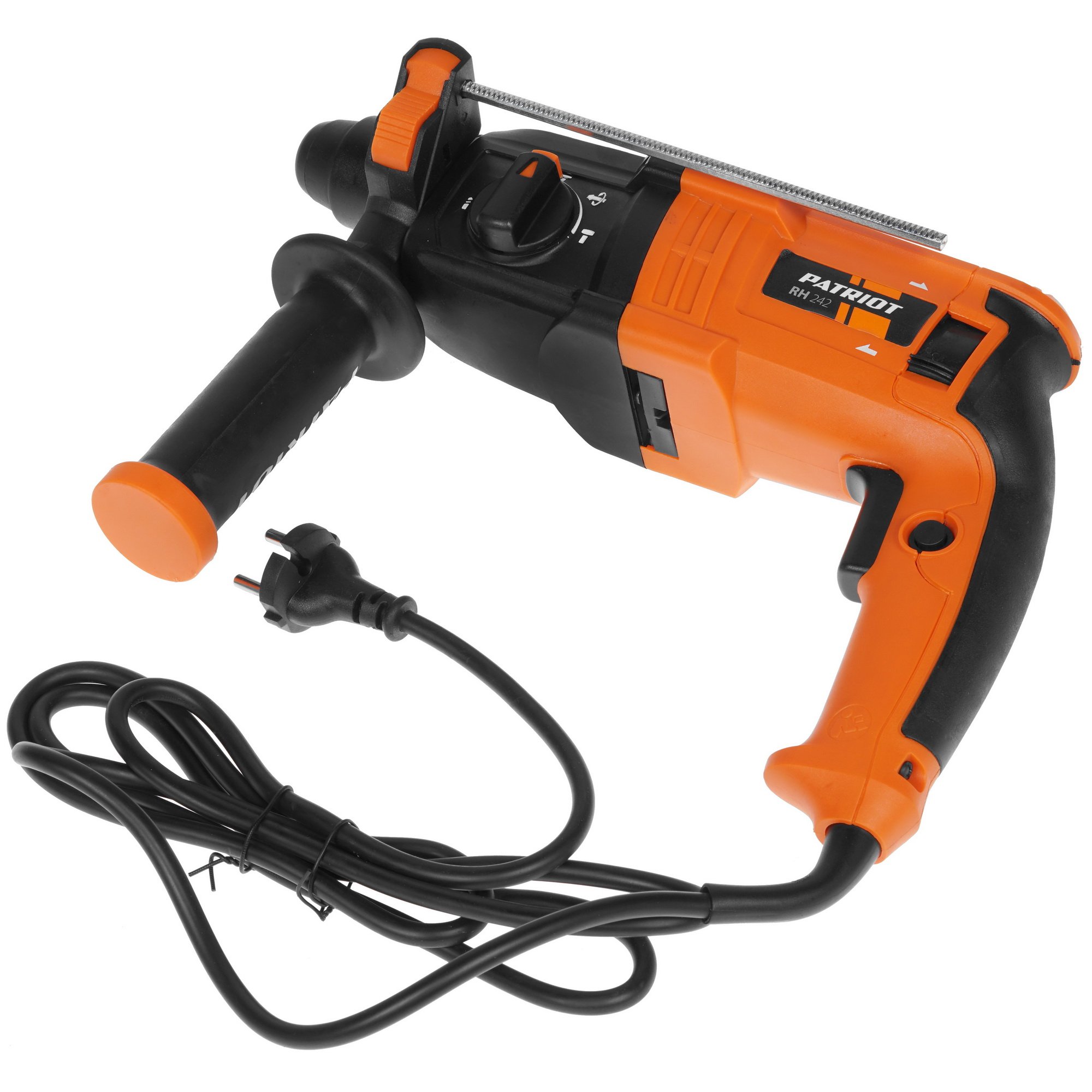 Фиксация выключателя повышает комфорт во время продолжительной работы. Инструмент работает от сети и обладает кабелем длиной 2 м. В комплекте с Patriot RH 242 The One поставляются ограничитель глубины сверления, дополнительная рукоятка из прорезиненного материала и практичный кейс.