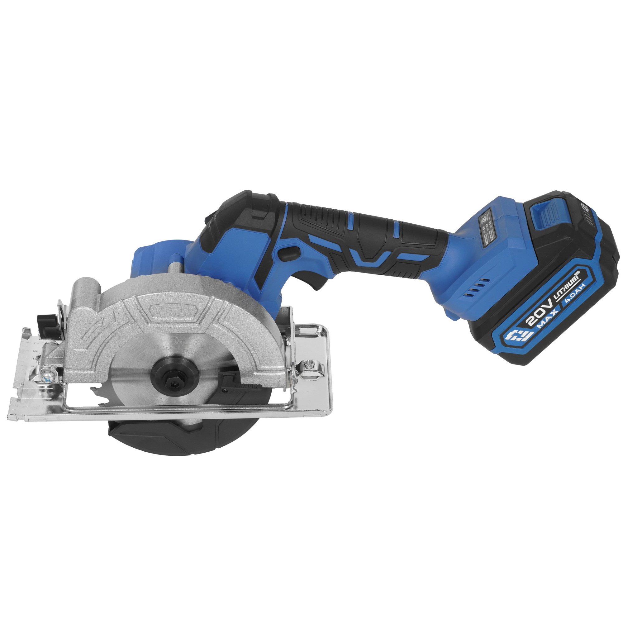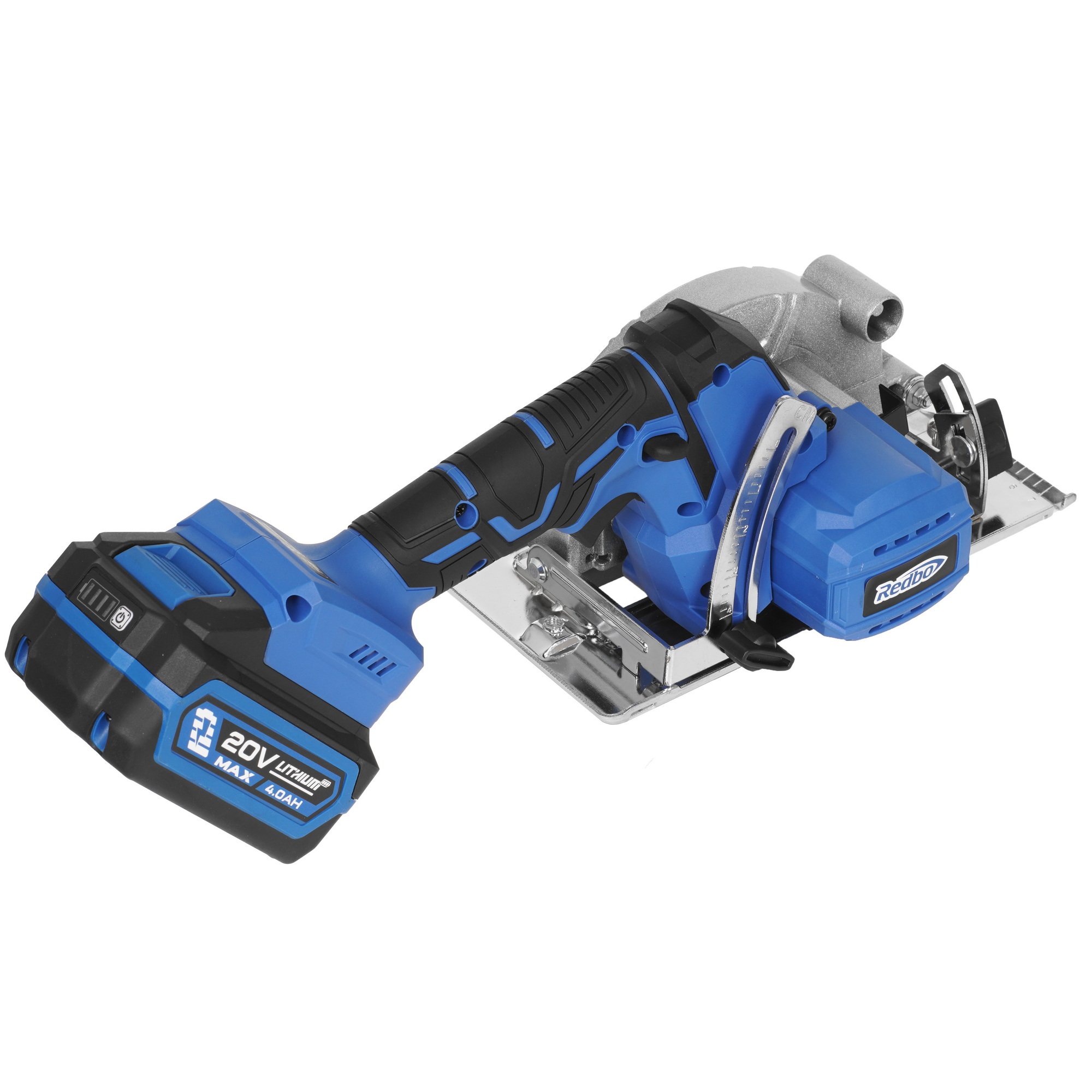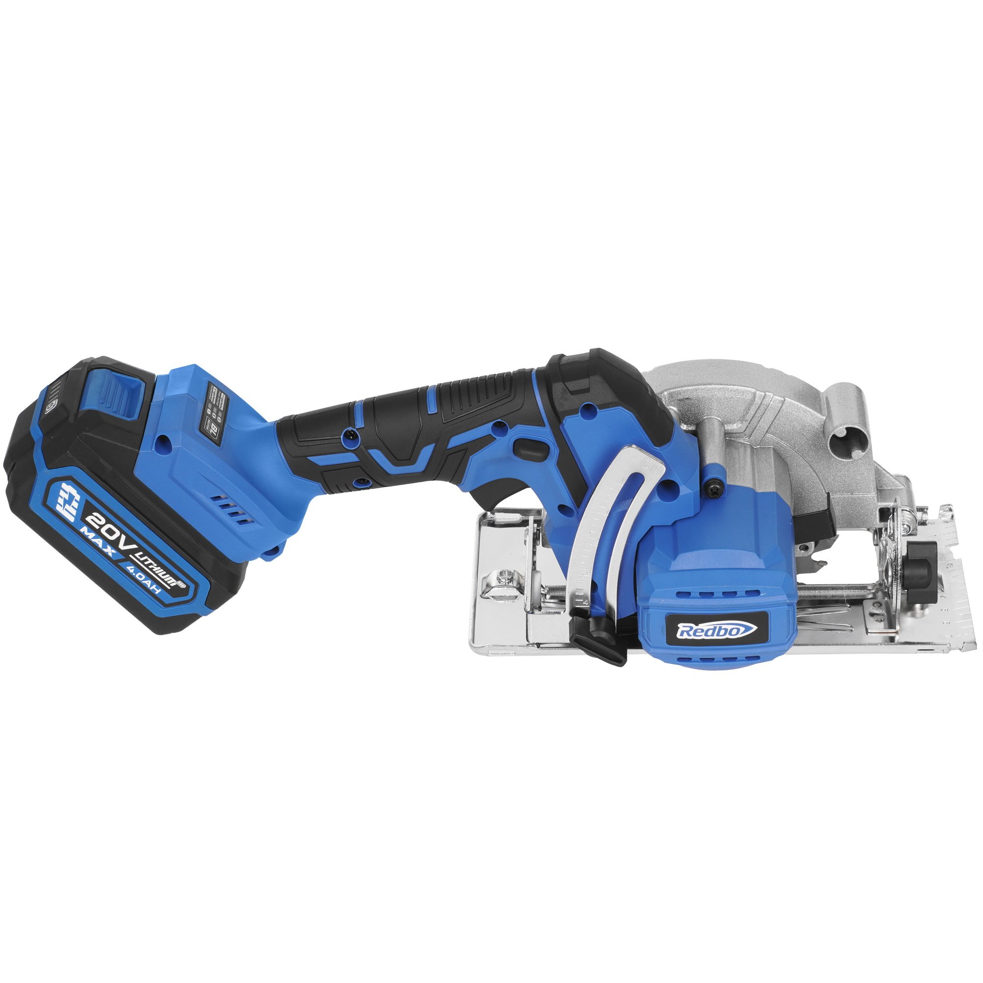 Пила дисковая REDBO OCS-20/125BL получает питание от аккумулятора. ЗУ и АКБ есть в комплекте.