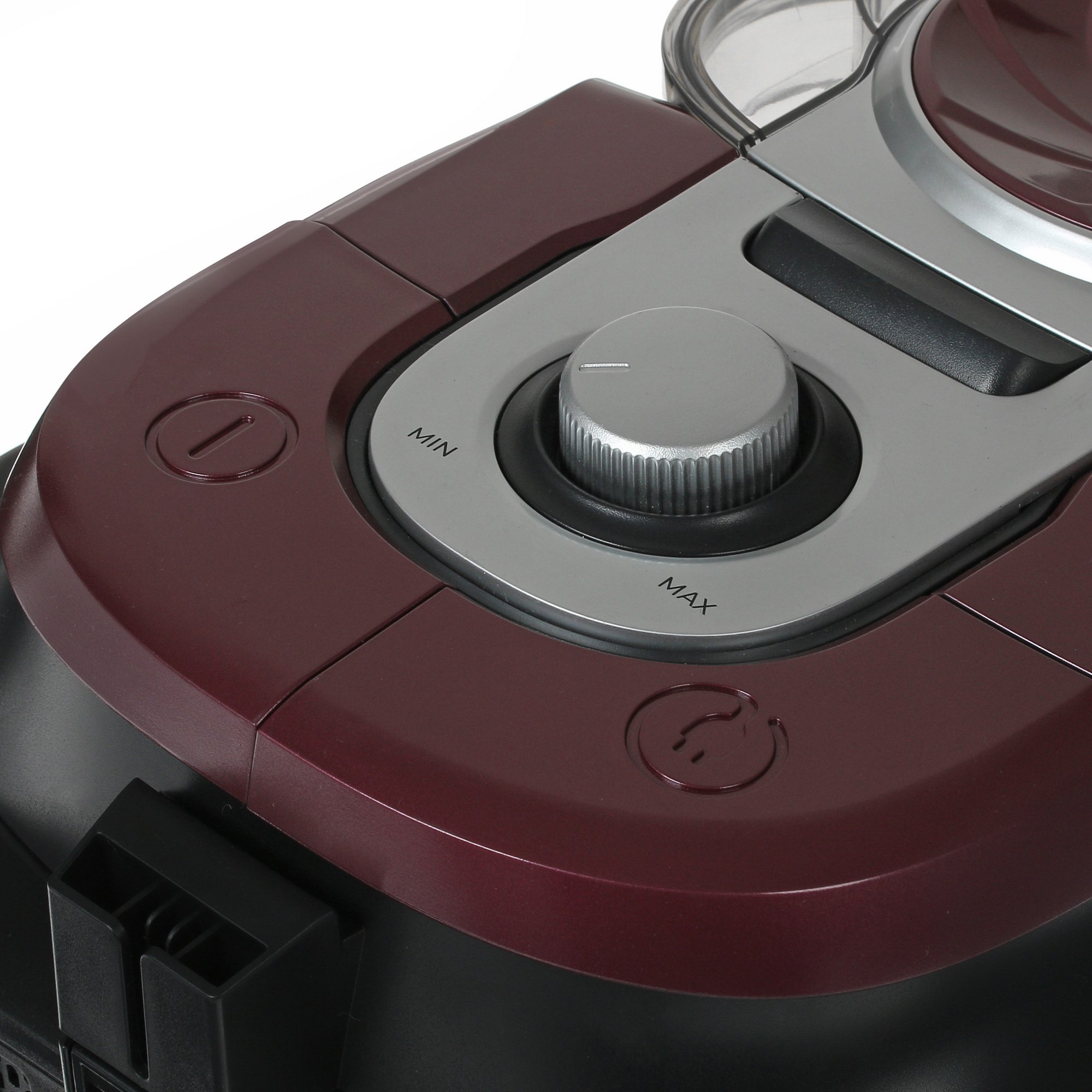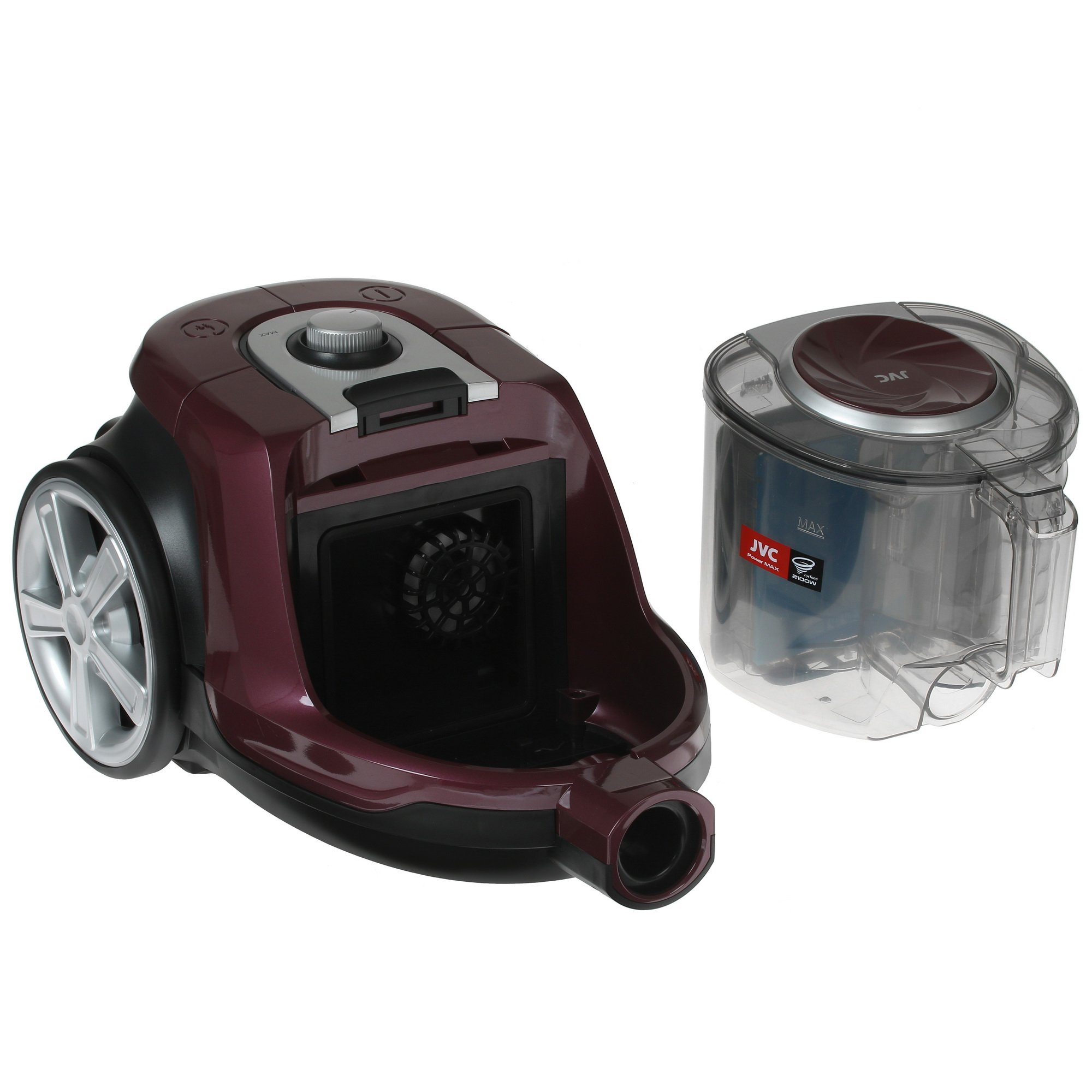 Прибор JVC JH-VC431 работает от обычной сети, радуя большим радиусом действия. На корпусе вы найдете большие кнопки включения/отключения и сматывания шнура, которые легко нажимаются ногой. Пылесос поставляется с набором насадок для чистки щелей, мебели, пола и ковра.