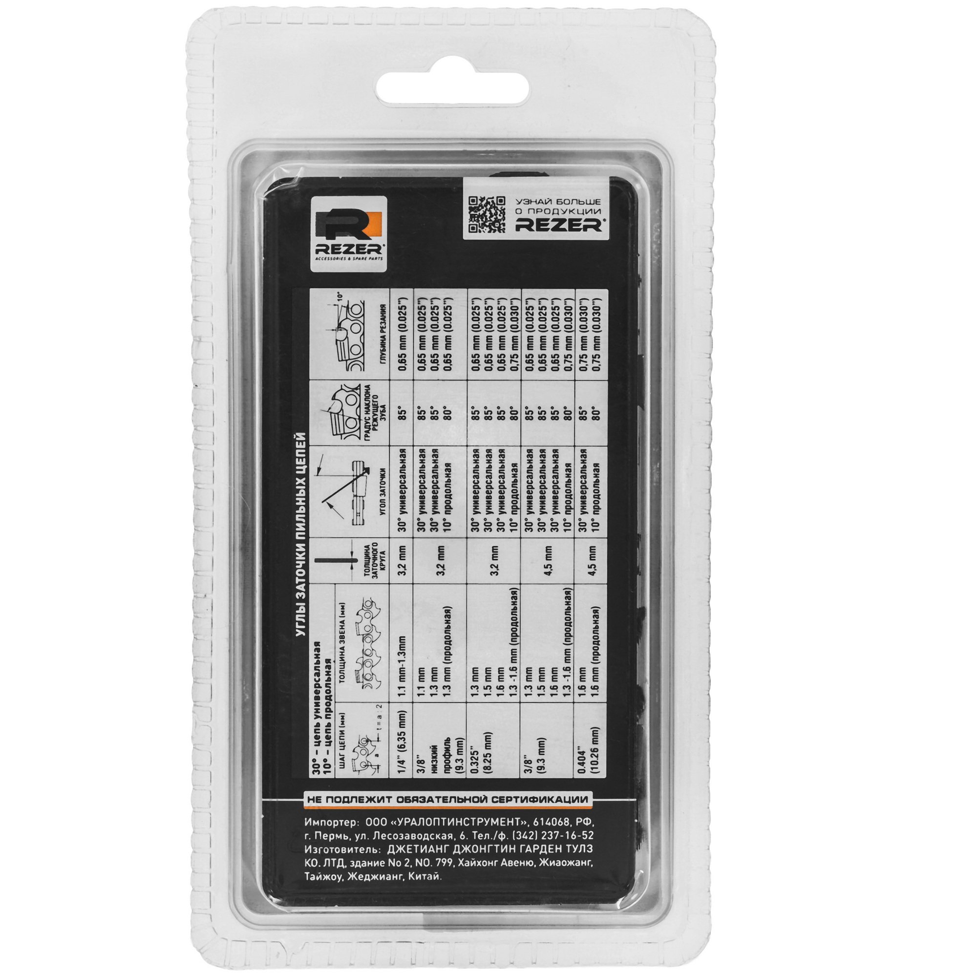 Цепи REZER предназначены для использования на цепных пилах различных моделей и классов. Конструкция средних звеньев способствует снижению вибрации, а конструкция направляющих звеньев обеспечивает дополнительную смазку, что продлевает ресурс пильного аппарата и создает комфортные условия пиления.