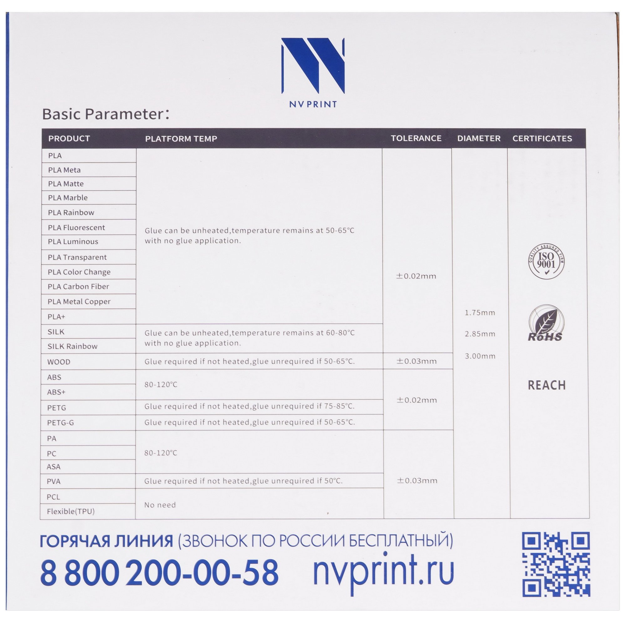 Толщина нити NVPRINT PLA Matte Clay составляет 1.75 мм, что делает возможным создание мелких деталей. Нить длиной 330 м находится на катушке для удобства при регулярной эксплуатации. Расходный аксессуар устойчив к негативному воздействию влаги.