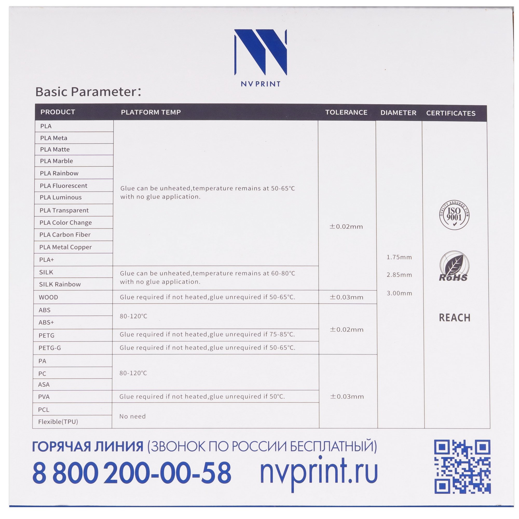 Филамент NVPrint PLA+ Silver для 3D печати диаметр 1.75мм длина 330 метров масса 1 кг