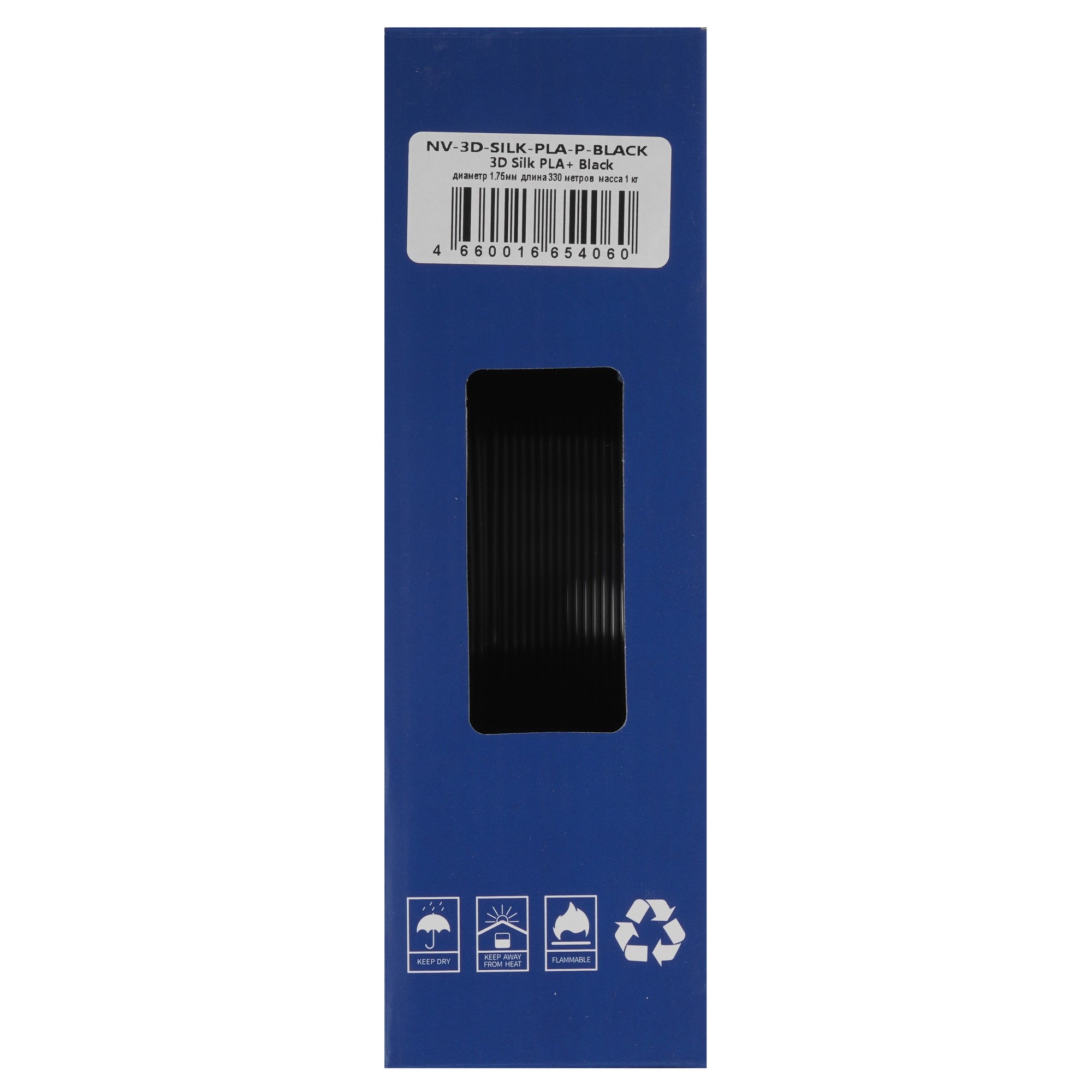 Филамент NVPrint Silk PLA+ черный для 3D печати диаметр 1.75мм длина 330 метров масса 1 кг