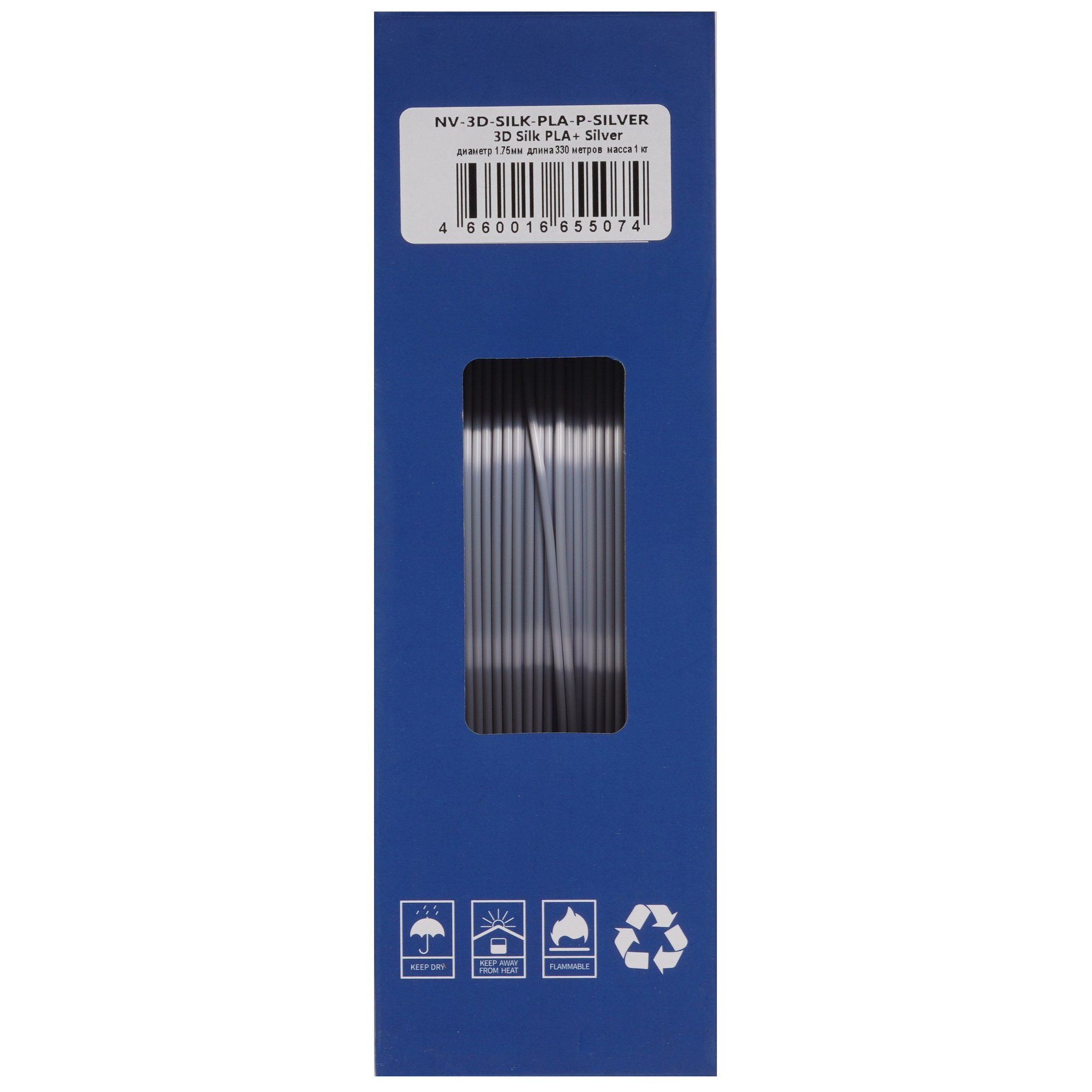 Филамент NVPrint Silk PLA+ Silver для 3D печати диаметр 1.75мм длина 330 метров масса 1 кг