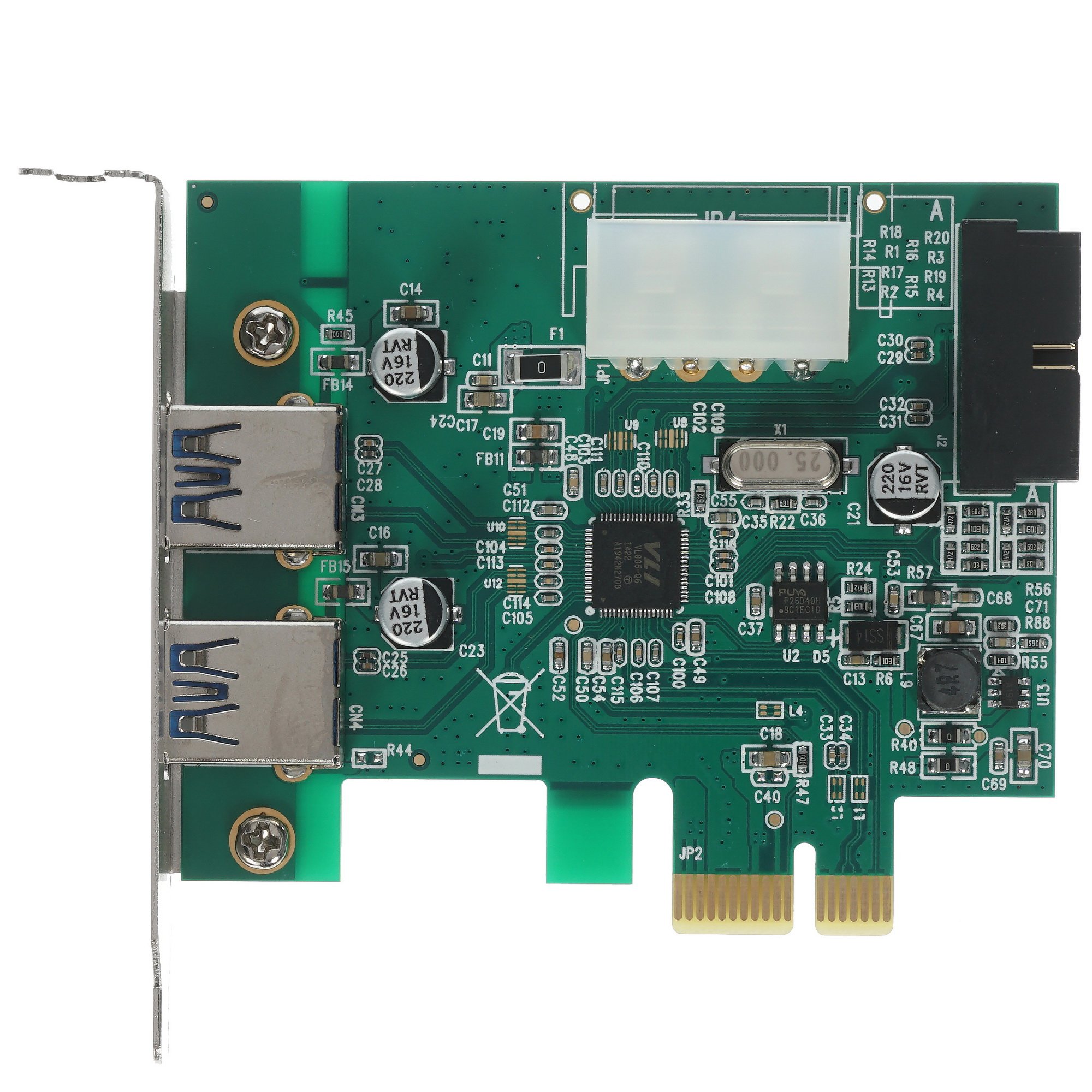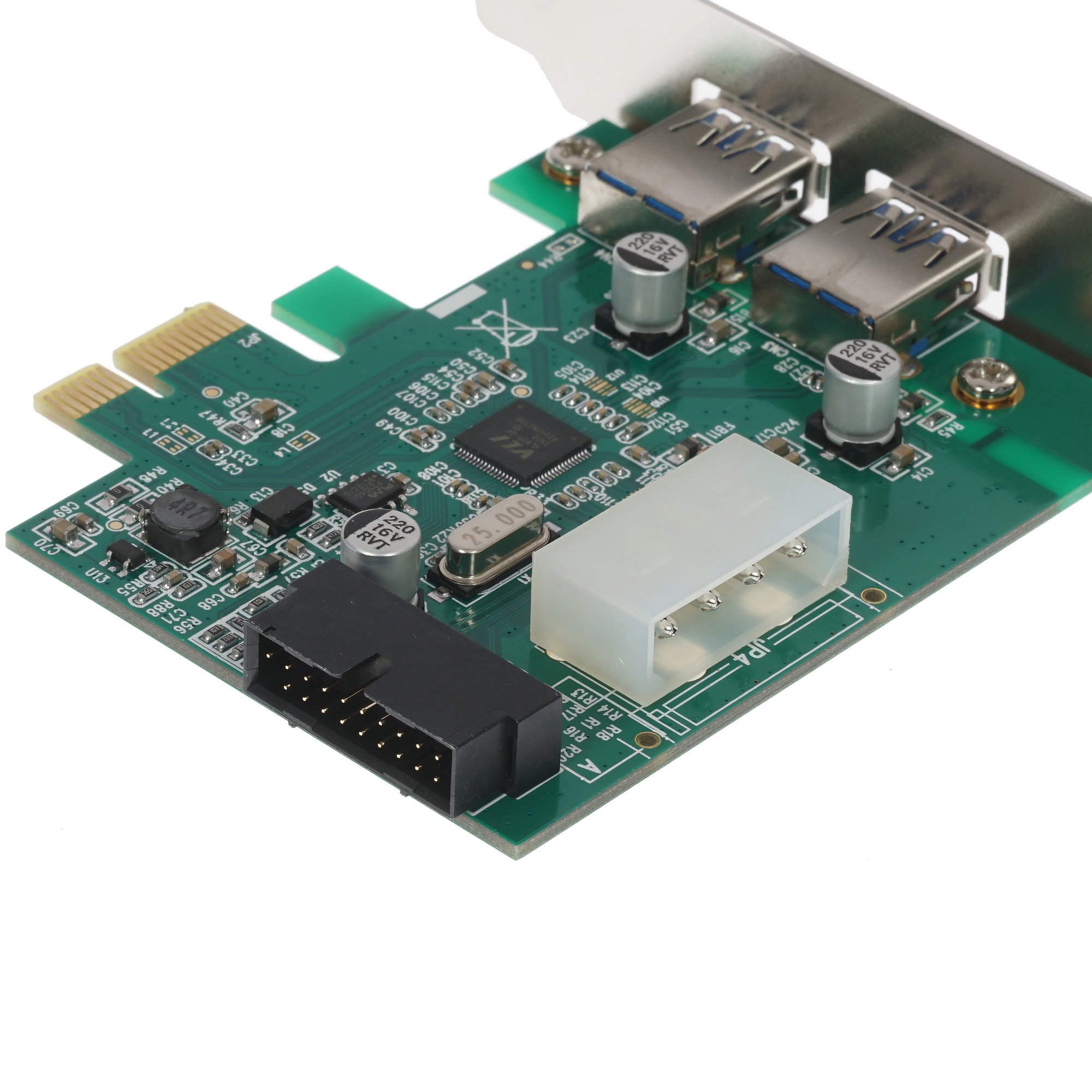 Контроллер ORIENT VA-3U2219PELP предназначен для модернизации системного блока и расширения возможностей подключения различных периферийных устройств. Данная модель оснащена двумя наружными портами USB 3.0. Также с внутренней стороны модуля есть еще один порт USB на 19-pin. Подключение к материнской плате осуществляется при помощи интерфейса PCI-E x2, пропускная способность которого может достигать 5 Гбит/с. Питание осуществляется при помощи Molex-разъема.