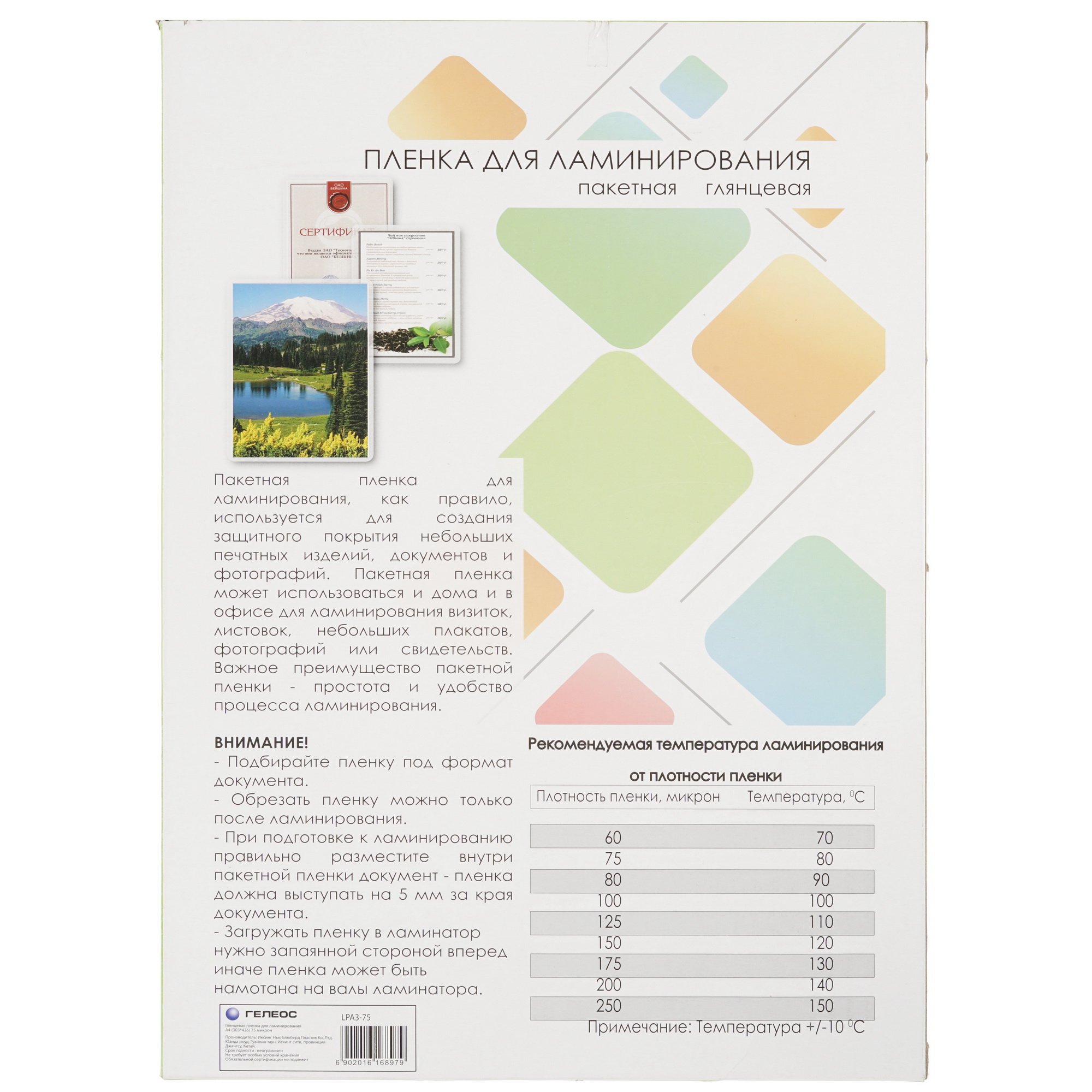 Пленка Гелеос LPA3-75 представляет собой расходный материал, незаменимый для процесса горячего ламинирования. Благодаря универсальному характеру вы сможете использовать его с различными соответствующими устройствами. В упаковке содержится 100 экземпляров.