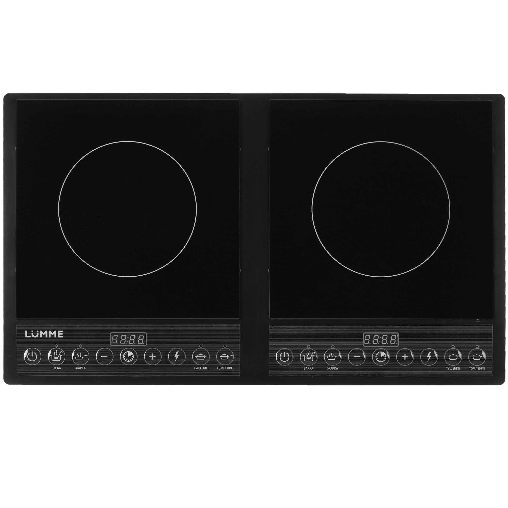 Плита компактная электрическая LUMME LU-3633 может похвастаться наличием 4 автоматических программ с предустановленными параметрами. Для каждой из 2 конфорок появился отдельный дисплей и представленная сенсорными элементами панель управления. Таким образом, у вас появится возможность одновременно готовить 2 совершенно разных блюда.