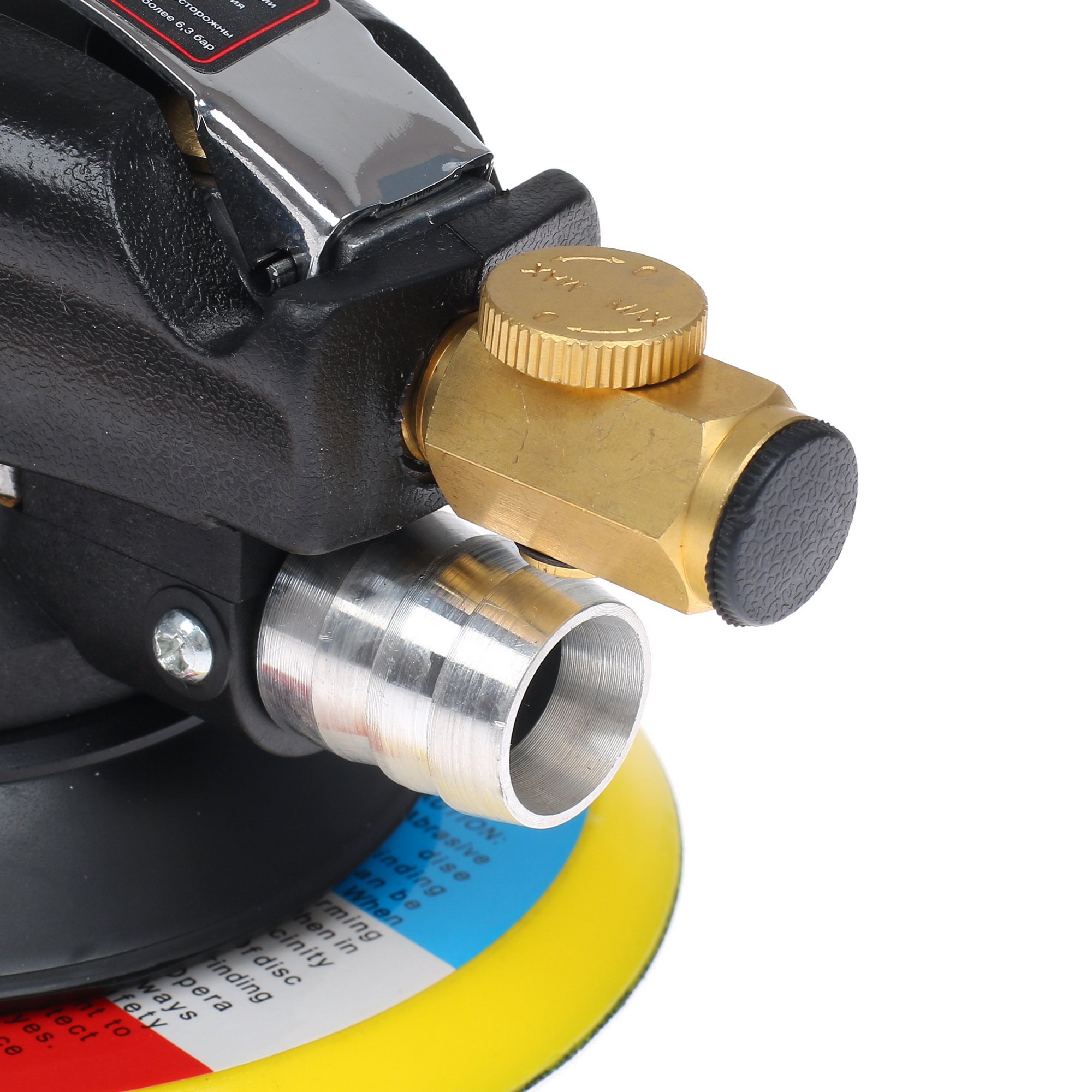 Диаметр впускного отверстия – ¼ дюйма. Учитывайте этот показатель при подборе подходящего шланга для подключения оснащения. Диаметр устанавливаемого диска – 150 мм. Машина выдает до 9000 оборотов в минуту, а шлифование материалов занимает немного времени.
