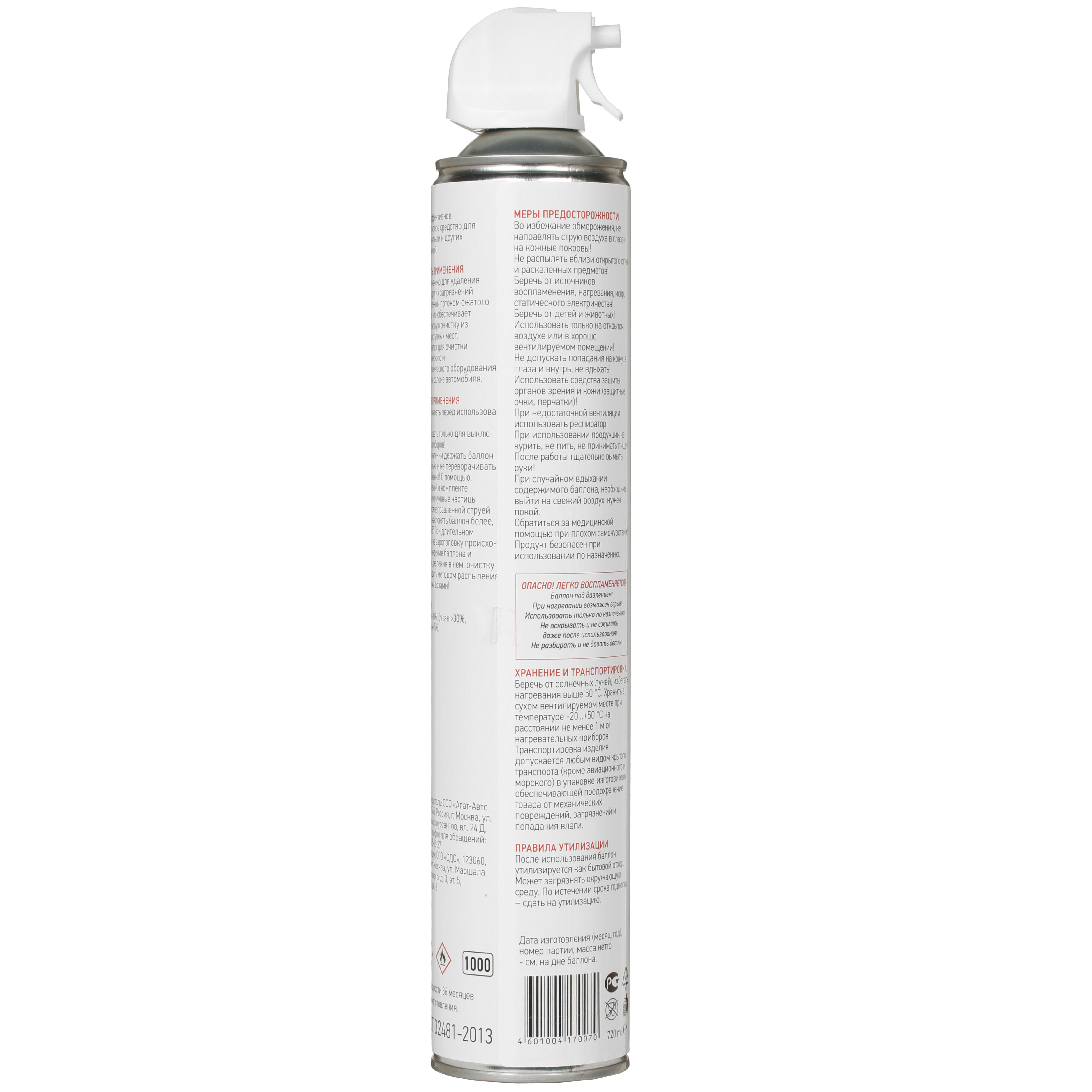 Пневматический очиститель Rexant Dust Off [720 мл] подходит для содержания в порядке высокоточного электронного оборудования, а также компьютеров и оргтехники. Очищать представленные устройства можно только выключенными! Тонкая струя сжатого воздуха точно подается к месту, которое необходимо очистить, под большим давлением. Это обеспечивает глубокую бесконтактную очистку даже самых труднодоступных зон. Меры безопасности и инструкция по применению размещены с обратной стороны баллона пневматического очистителя Rexant Dust Off [720 мл].