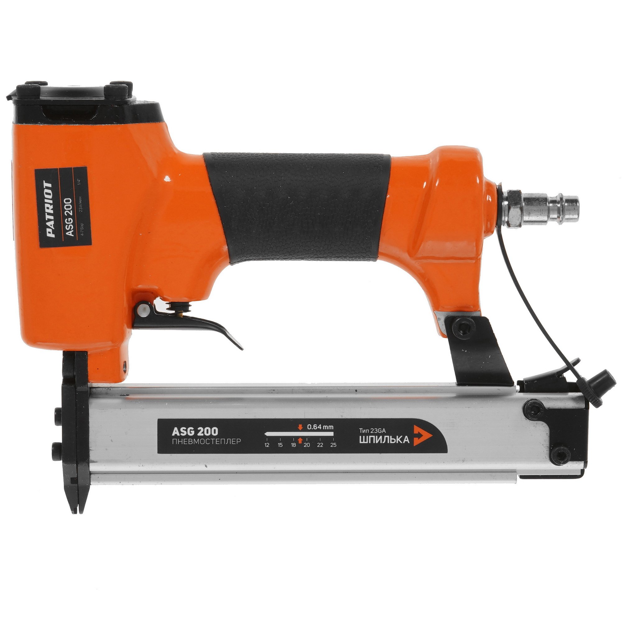 Пневмостеплер шпилькозабивной PATRIOT ASG 200, 23 л/мин, шпилька - Тип 23 (23GA); длина 12-25 мм; сечение 0,64 мм, 100 шт.