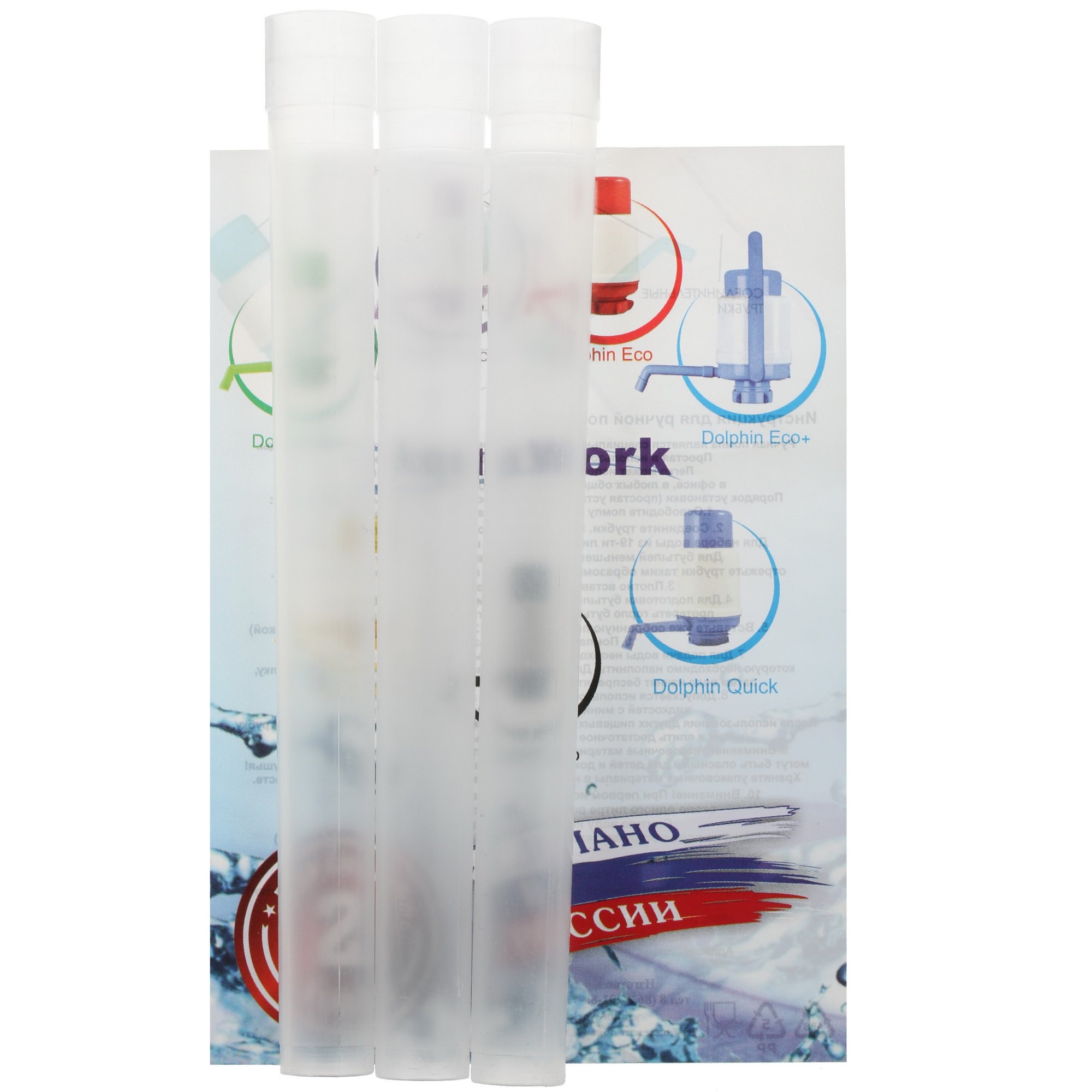 Размер помпы Дельфин ЭКО соответствует 24x12x13 см, что позволяет брать ее с собой в поездки, получая возможность взять воду из бутылей. Для закрепления изделия на горлышке бутыли используется цанговый зажим. Для откачивания питьевой воды применяется составная трубка оптимальной длины, которая позволяет доставать воду даже со дна емкости. Для ухода за помпой она разбирается, что позволяет очищать ее от налета и загрязнений, а также дезинфицировать.