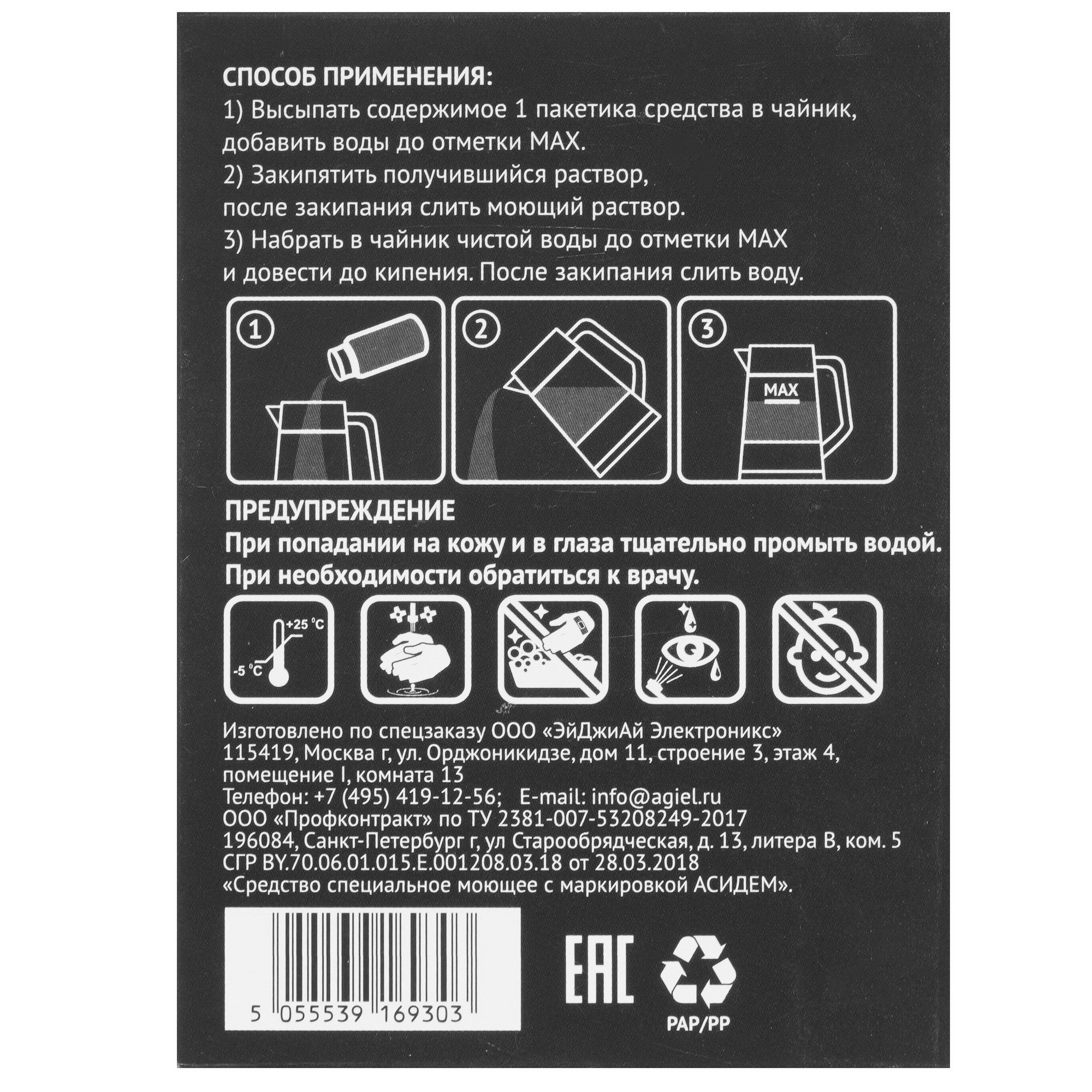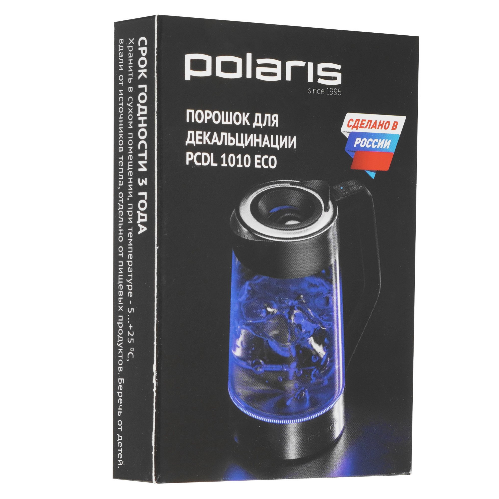 Порошок для удаления накипи Polaris PCDL 1010 ECO прост при последующем применении. Достаточно высыпать содержимое в емкость чайника, налить воды и вскипятить. Не забудьте тщательно промыть резервуар устройства.
