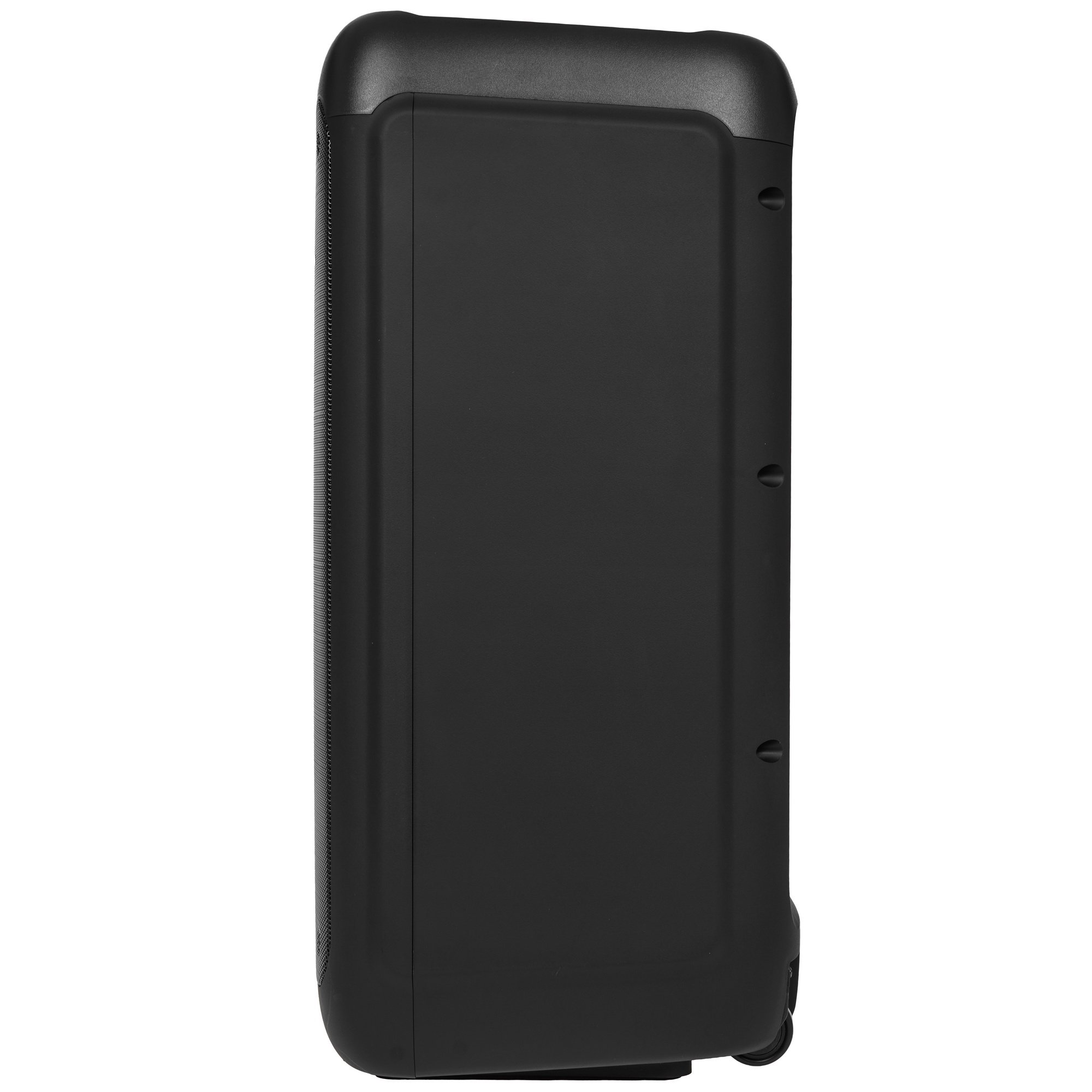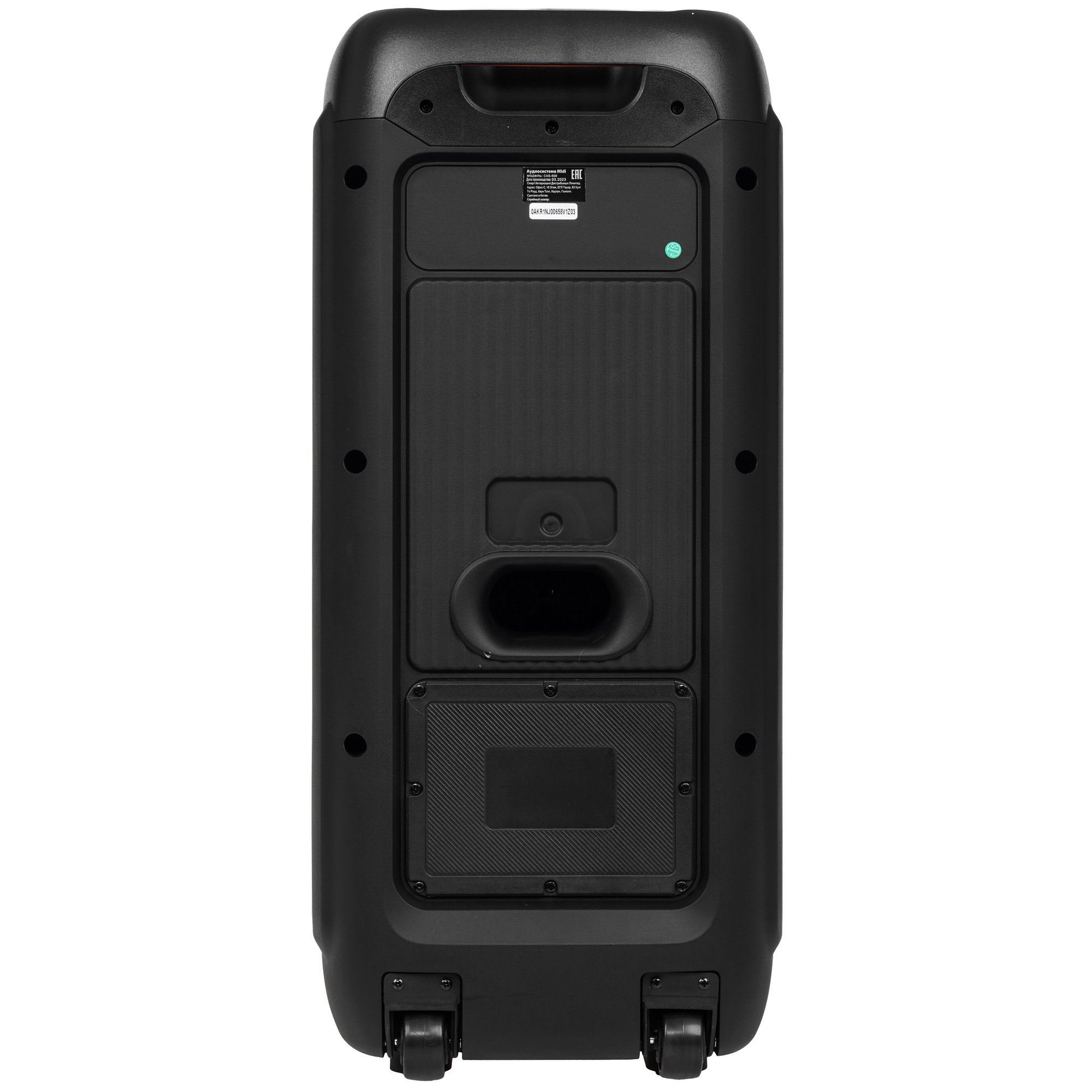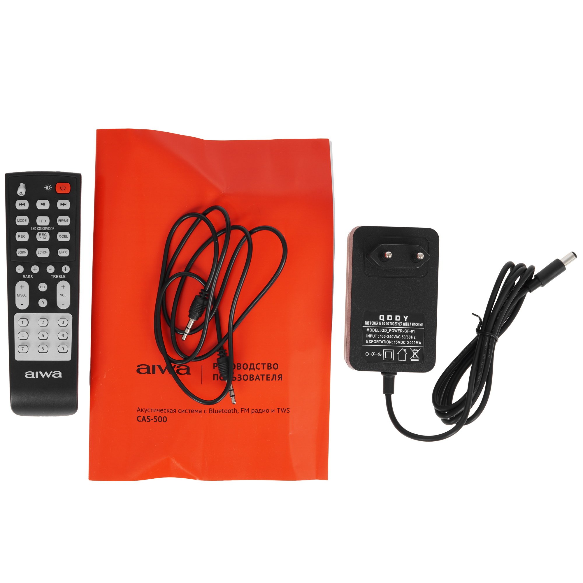 AIWA CAS-500 выполнена в черном корпусе с многоцветной подсветкой и кнопками управления на верхней панели. Для удобства перемещения есть колесики и ручка. Устройство может работать от сети или аккумулятора в течение трех часов без подзарядки. Поэтому аудиосистему можно установить рядом с розеткой или в любом удобном месте комнаты. Дисплей показывает уровень оставшейся зарядки. Поддержка технологии TWS позволяет объединять несколько таких колонок в более мощную и громкую стереосистему.