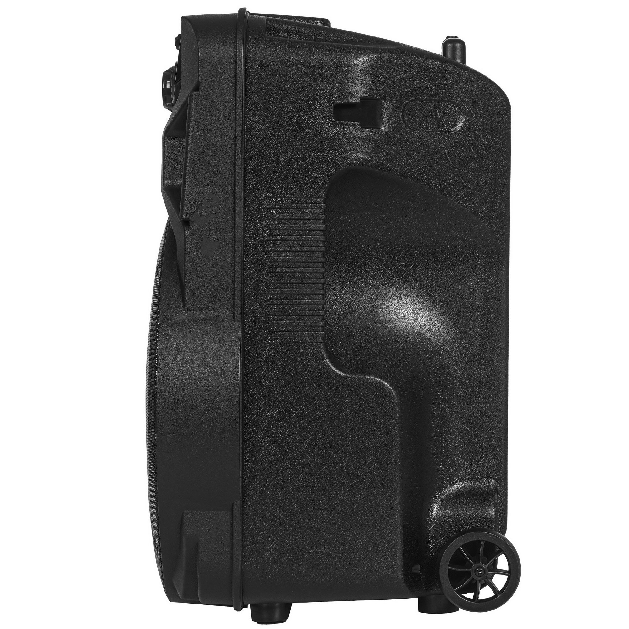 Портативная аудиосистема Blackton Bt PBS2115 весит чуть больше 8 кг при высоте 59 см. Это позволяет располагать акустику практически где угодно, чтобы вы могли организовать вечеринку или тренировку. Для удобства перемещения у нее есть колесики в основании и ручка в верхней части.