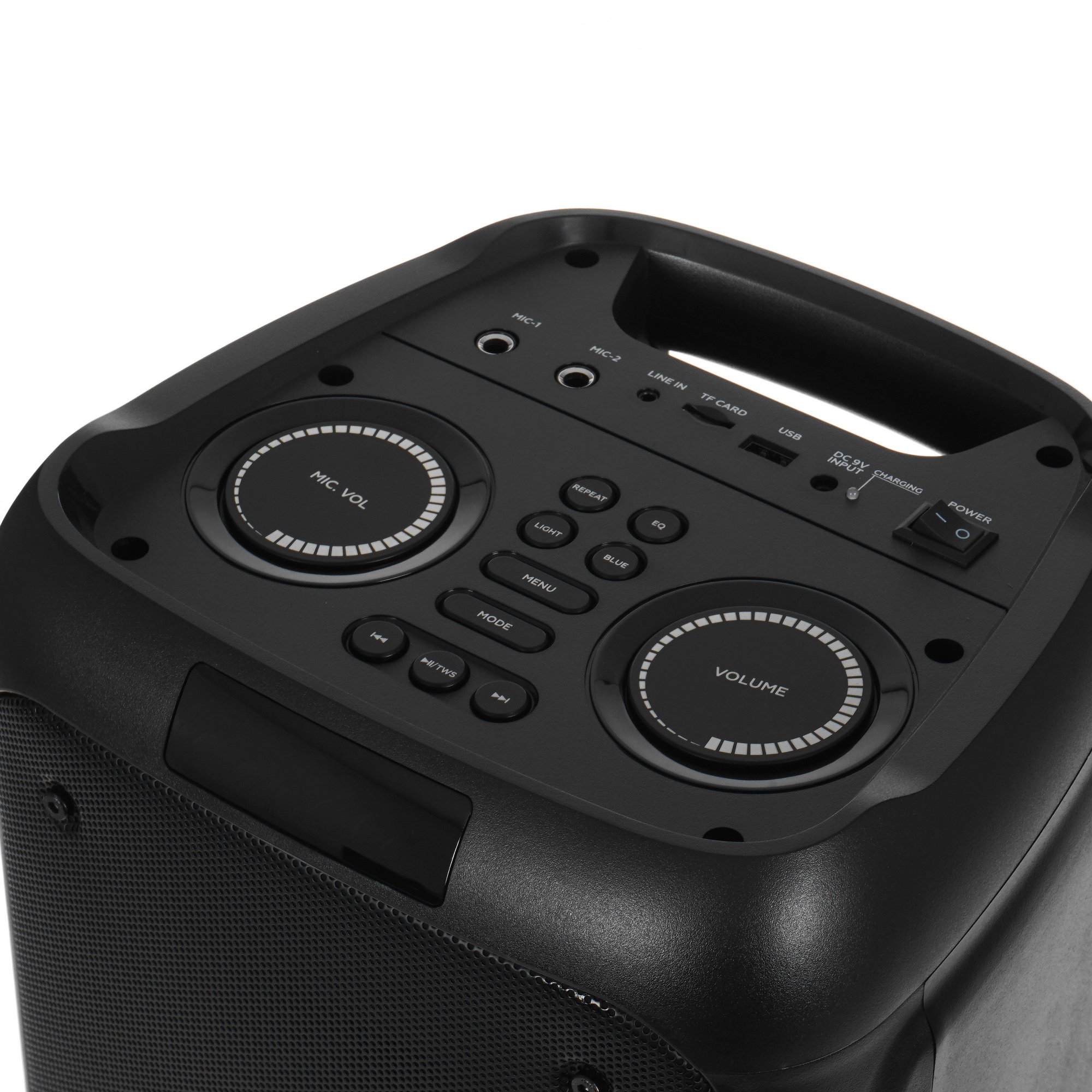 Домашняя аудиосистема BQ PBS1005 отличается широким набором функций для прослушивания аудиоконтента. Благодаря акустической системе мощностью 32 Вт достигается реалистичное, насыщенное и четкое звучание. Колонка изготовлена в прямоугольном корпусе с устойчивым основанием, переносной ручкой и эффектной подсветкой RGB. Для воспроизведения музыки с разных источников предлагаются модуль Bluetooth, разъем USB, аудиоразъем 3.5 мм, считыватель карты памяти MicroSD, а также FM-радио. Аккумулятор увеличенной емкости 5400 мА*ч гарантирует продолжительную автономность BQ PBS1005 – около 5 часов. На панели управления расположены ряд кнопок для простой настройки параметров и дисплей с отображением информации.