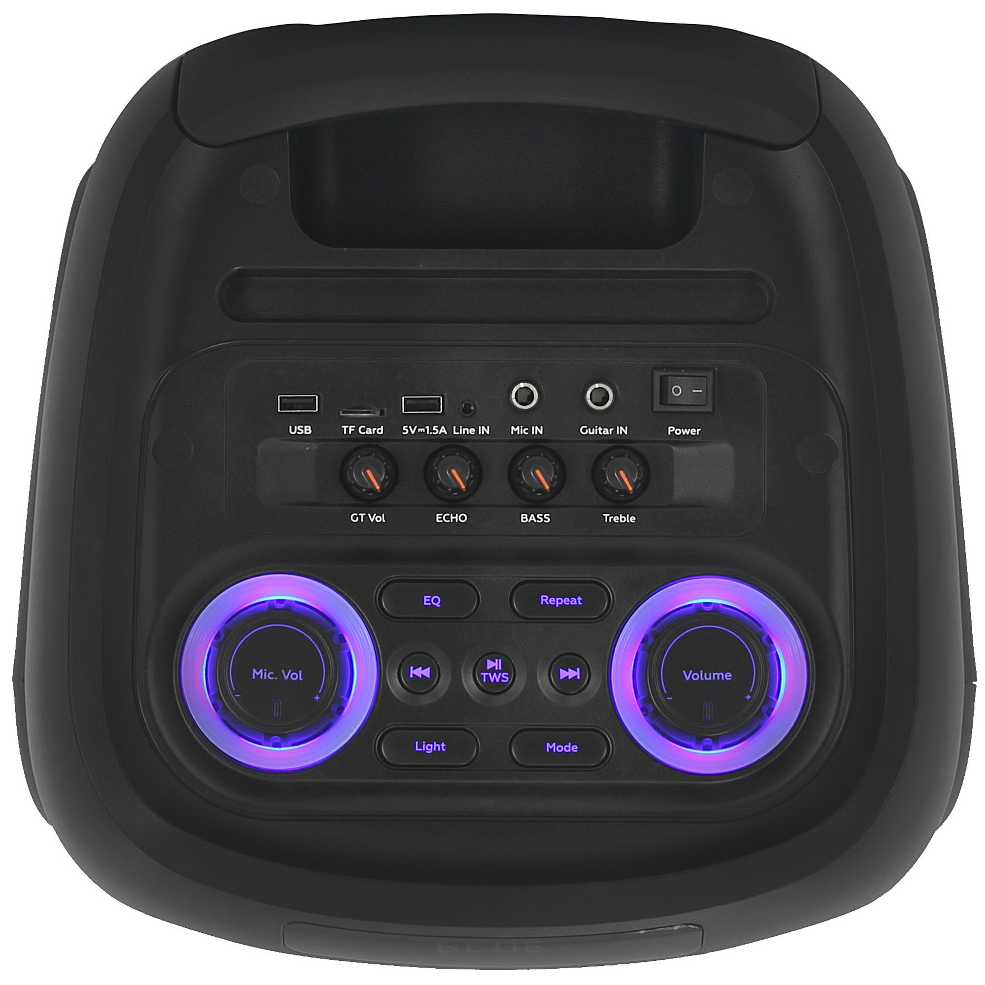 Для настройки функционала портативной аудиосистемы BQ PBS2008 предусмотрена панель с кнопками и дисплеем, а также пульт ДУ. Возможно управление со смартфона. Наличие эквалайзера обеспечит насыщенное и глубокое звучание разных музыкальных жанров. Для объемного звука аудиосистему можно объединять в стереопару с аналогичной колонкой. Встроенный аккумулятор поддерживает бесперебойную работу аудиосистемы до 10 ч в автономном режиме. При необходимости он способен выполнять функцию пауэрбанка для подзарядки других устройств.