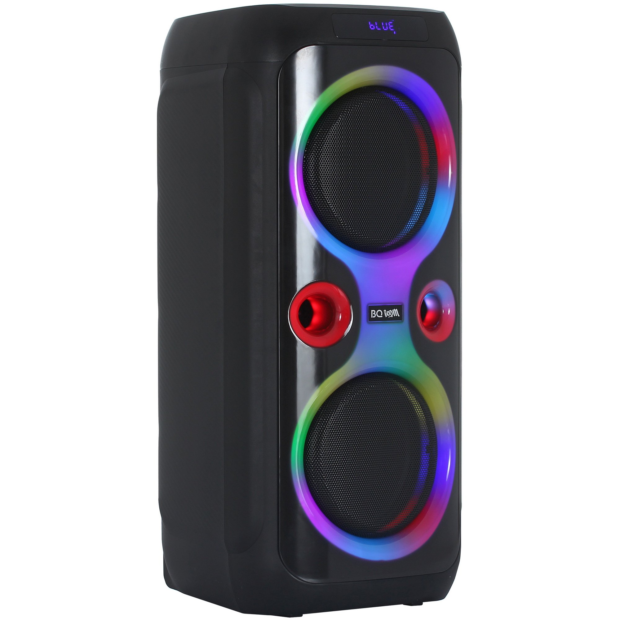 Портативная аудиосистема BQ PBS2008 черного цвета с разноцветной подсветкой корпуса представляет собой стереосистему мощностью 100 Вт. Она способна воспроизводить четкий и насыщенный звук с разных устройств: ПК, смартфона, ноутбука, карты памяти или флэш-накопителя. К ней можно подключит гитару или микрофон, чтобы устроить небольшой концерт. Для веселой вечеринки есть режим караоке. Подключение колонки осуществляется по Bluetooth в радиусе до 25 м или через AUX-кабель.