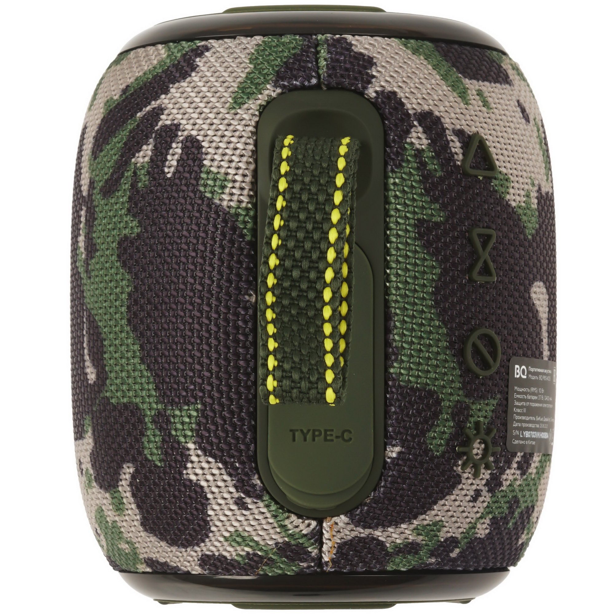 Портативная колонка BQ PBS4005 в корпусе из пластика и текстиля камуфляжного цвета защищена по стандарту IPX7, который исключает риск попадания влаги внутрь оболочки. Встроенный микрофон позволяет принимать входящие вызовы. Синхронизация со смартфоном, ноутбуком, ПК производится через интерфейс Bluetooth 5.2.