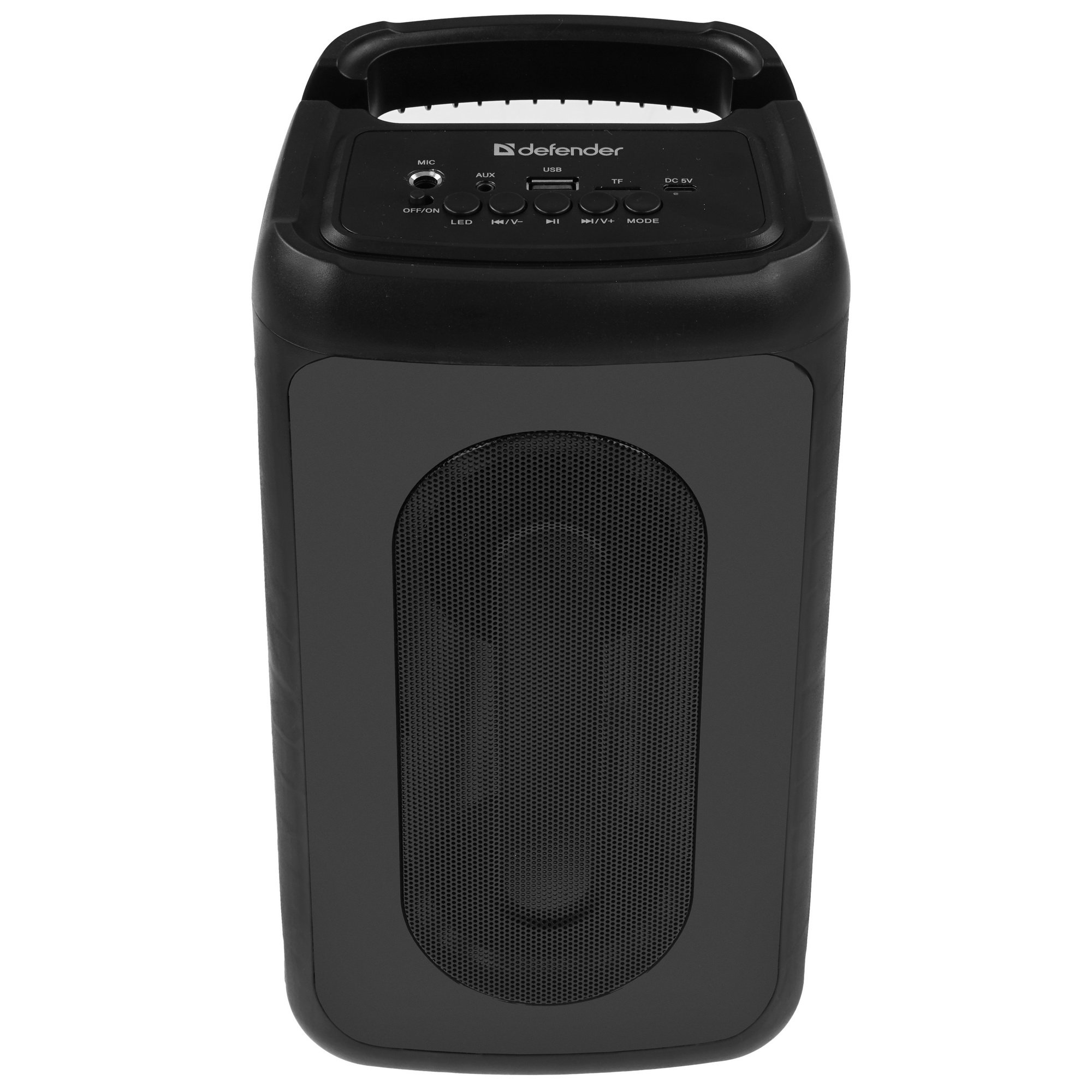 Defender Concerto - мощная портативная акустическая Bluetooth 5.3. система с LED подсветкой, встроенным MP3-плеером и FM-тюнером. Поддержка флеш накопителей и карт памяти microSD. Колонка комплектуется проводным микрофоном.