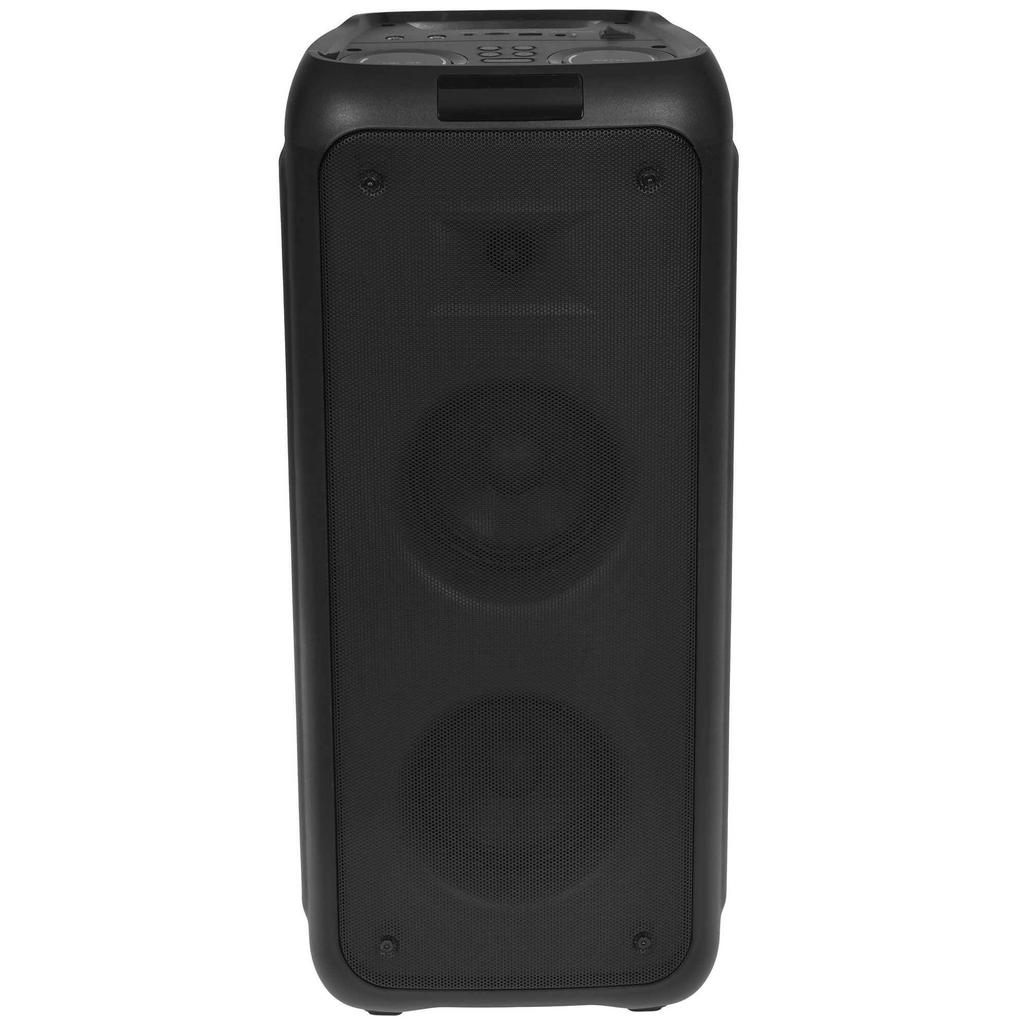 GINZZU GM-215 дополнена модулем Bluetooth для связи с мобильными устройствами и управления настройками со смартфона. Колонка с яркой подсветкой работает от АКБ, что позволяет устраивать вечеринки с громкой музыкой даже на природе. На корпусе есть порты USB, jack 3.5 mm, слот для MicroSD-карт и 2 входа для микрофона. Режим TWS позволяет разным Bluetooth-устройствам работать в режиме единой стереосистемы.