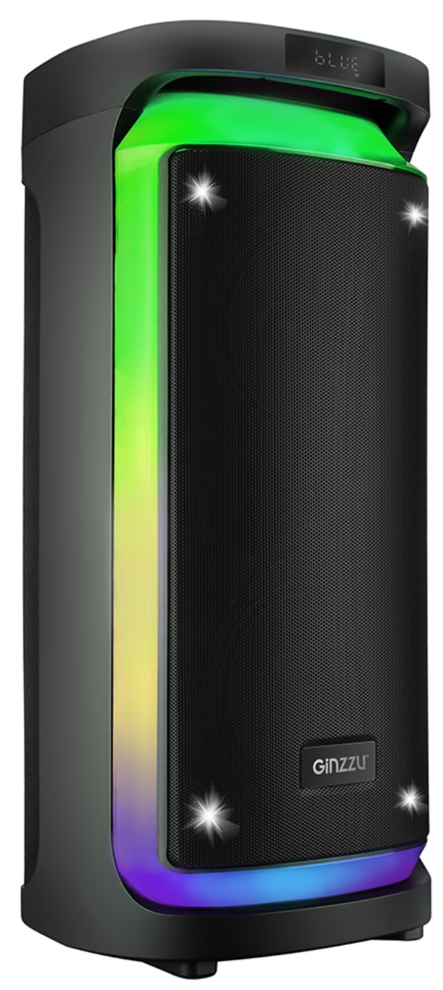 Портативная аудиосистема GiNZZU GM-226 выполнена в черном пластиковом корпусе с динамической светодиодной подсветкой, которая мигает в ритм воспроизводимой музыки. Система может работать от сети и от аккумулятора емкостью 4500 мА*ч.