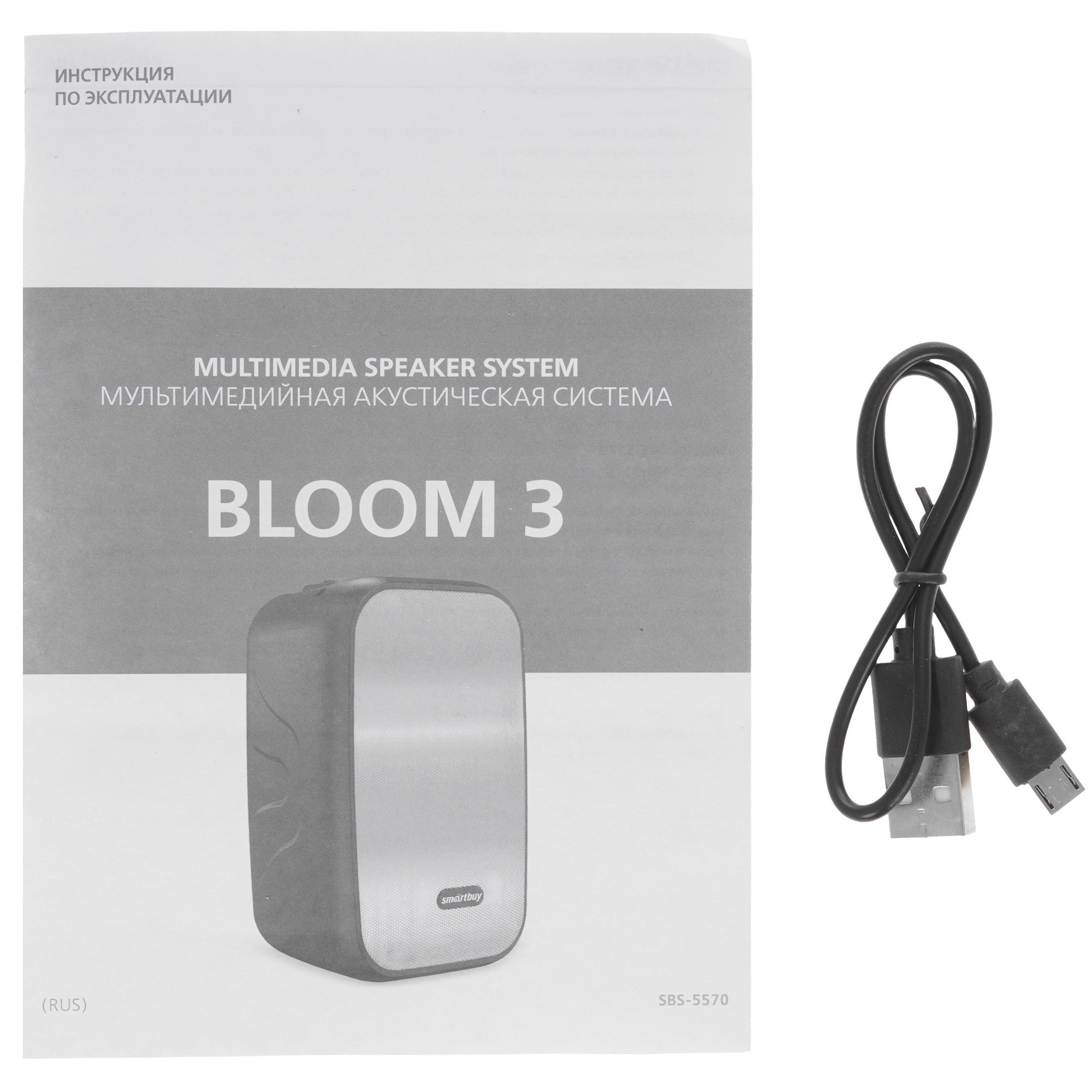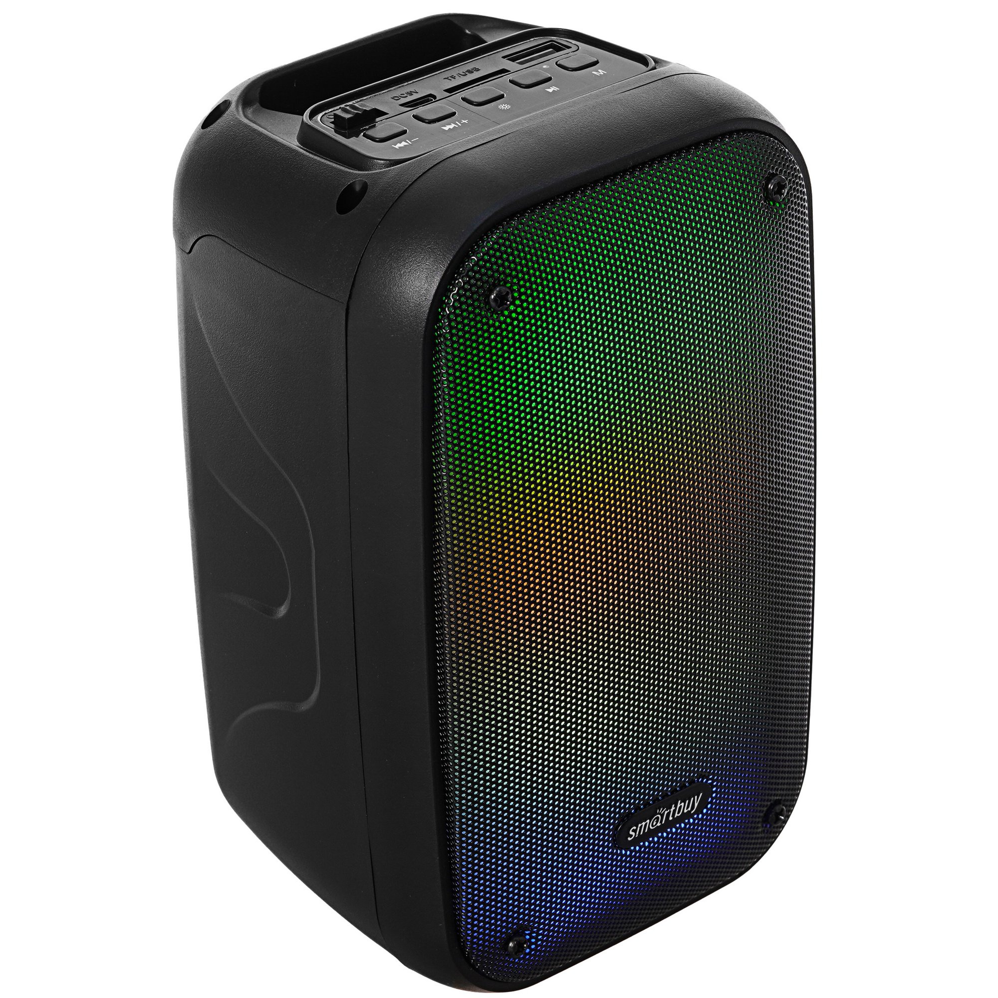 Портативная аудиосистема Smartbuy BLOOM 3 выполнена в пластиковом корпусе с многоцветной подсветкой и удобно расположенным регулятором на верхней панели. Есть USB-порт и слот для microSD-карт, модуль Bluetooth для беспроводной связи с источником сигнала. Вы можете слушать FM-радио и любимую музыку с внешних накопителей или мобильных устройств. Аккумулятор выдерживает до 5 ч работы без подзарядки.