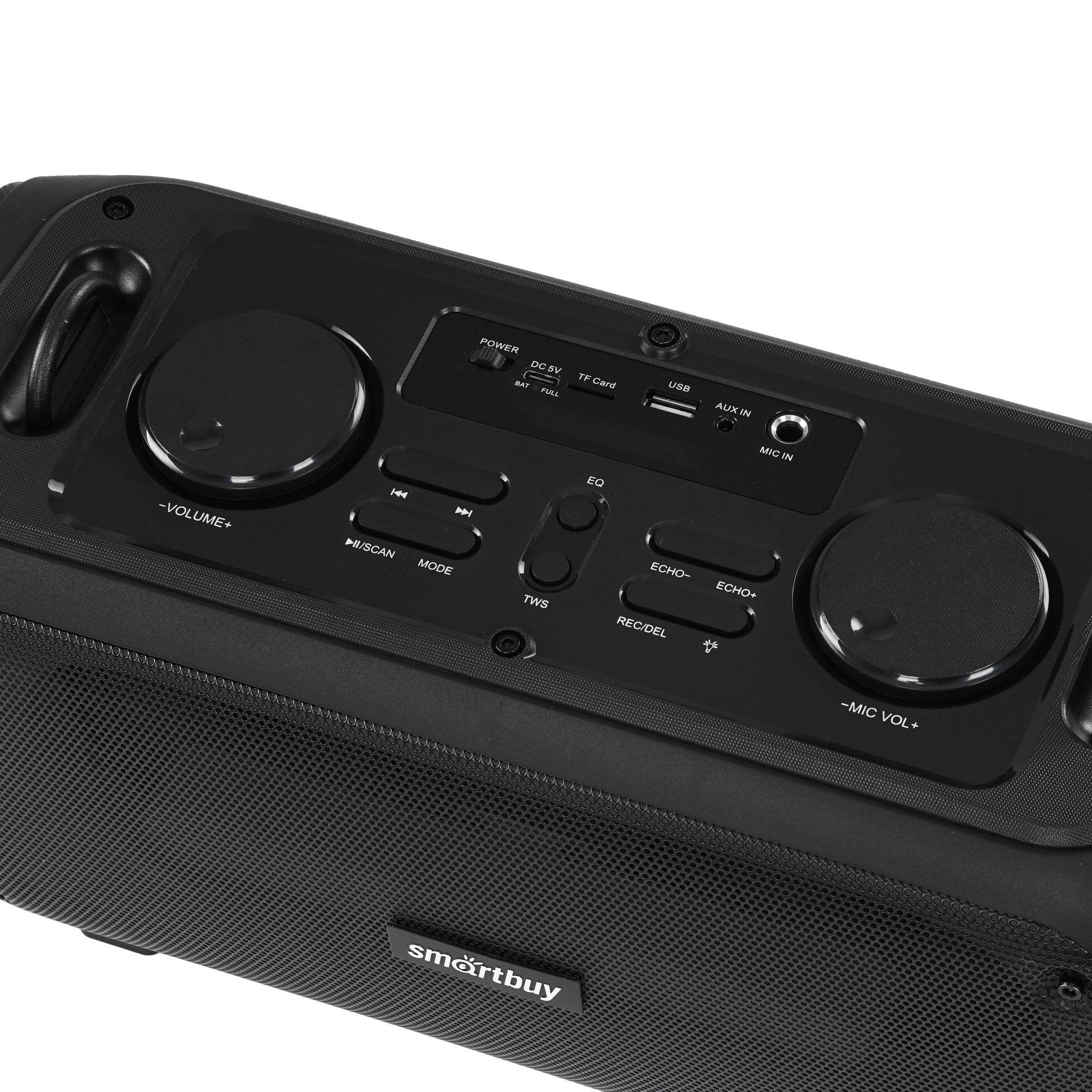 Портативная аудиосистема Smartbuy AGILITY дополнена ручкой и ремешком для удобного удержания в руках. Вы можете использовать Bluetooth или AUX-вход для подключения других устройств, транслировать музыку с USB-накопителей и карт памяти microSD. Есть FM-тюнер и эквалайзер, функция караоке с настройкой громкости и эффектов. Колонка выдерживает до 8 часов автономной работы.