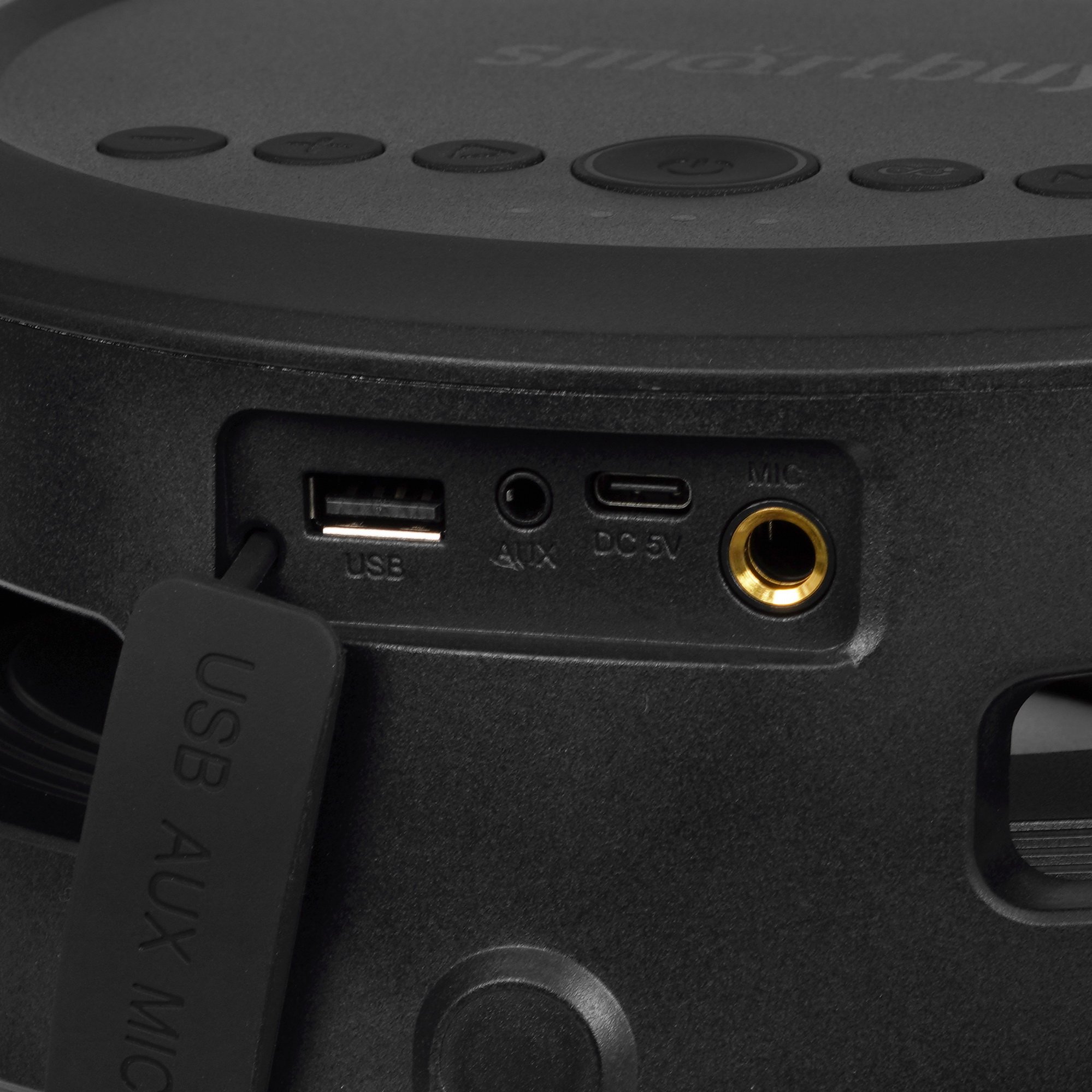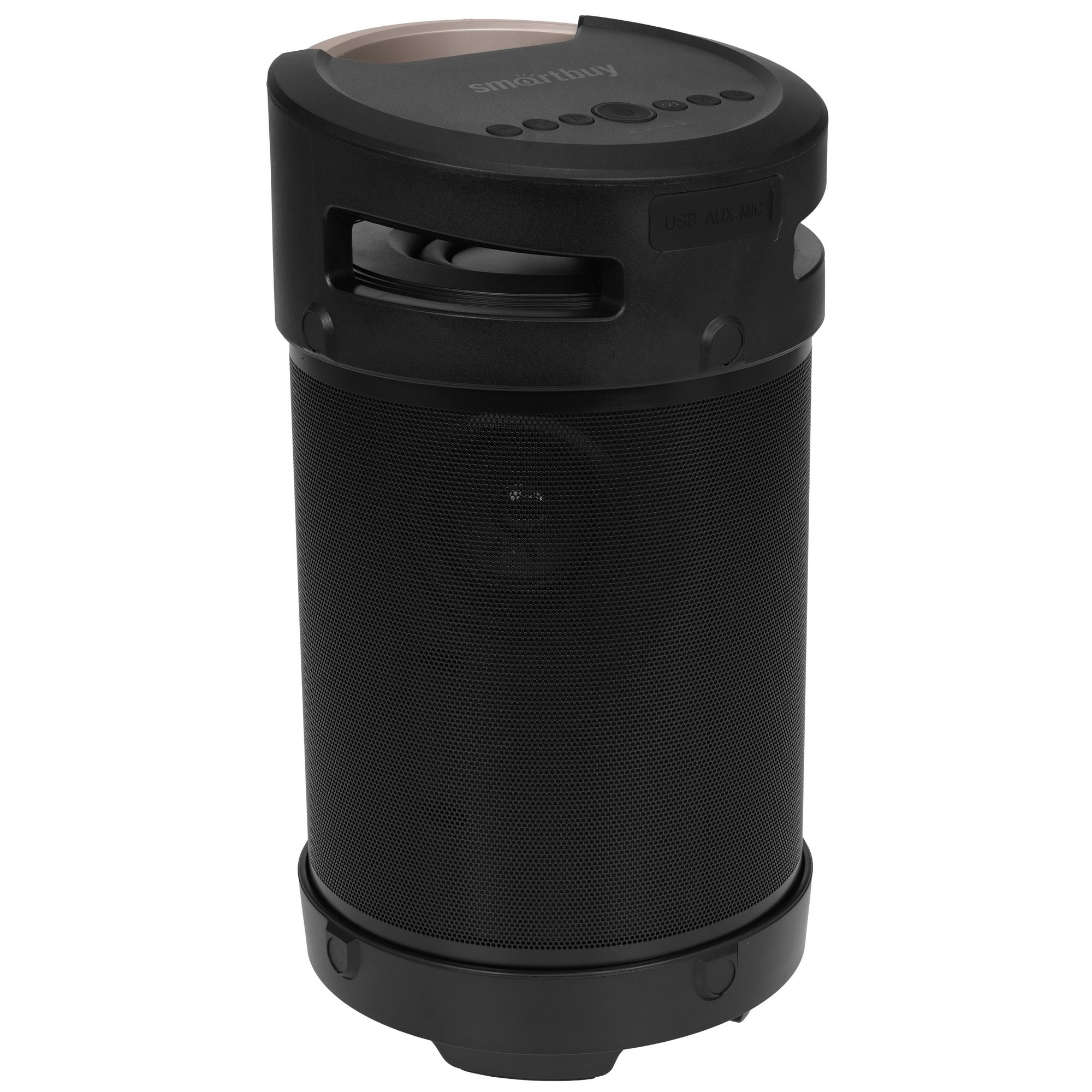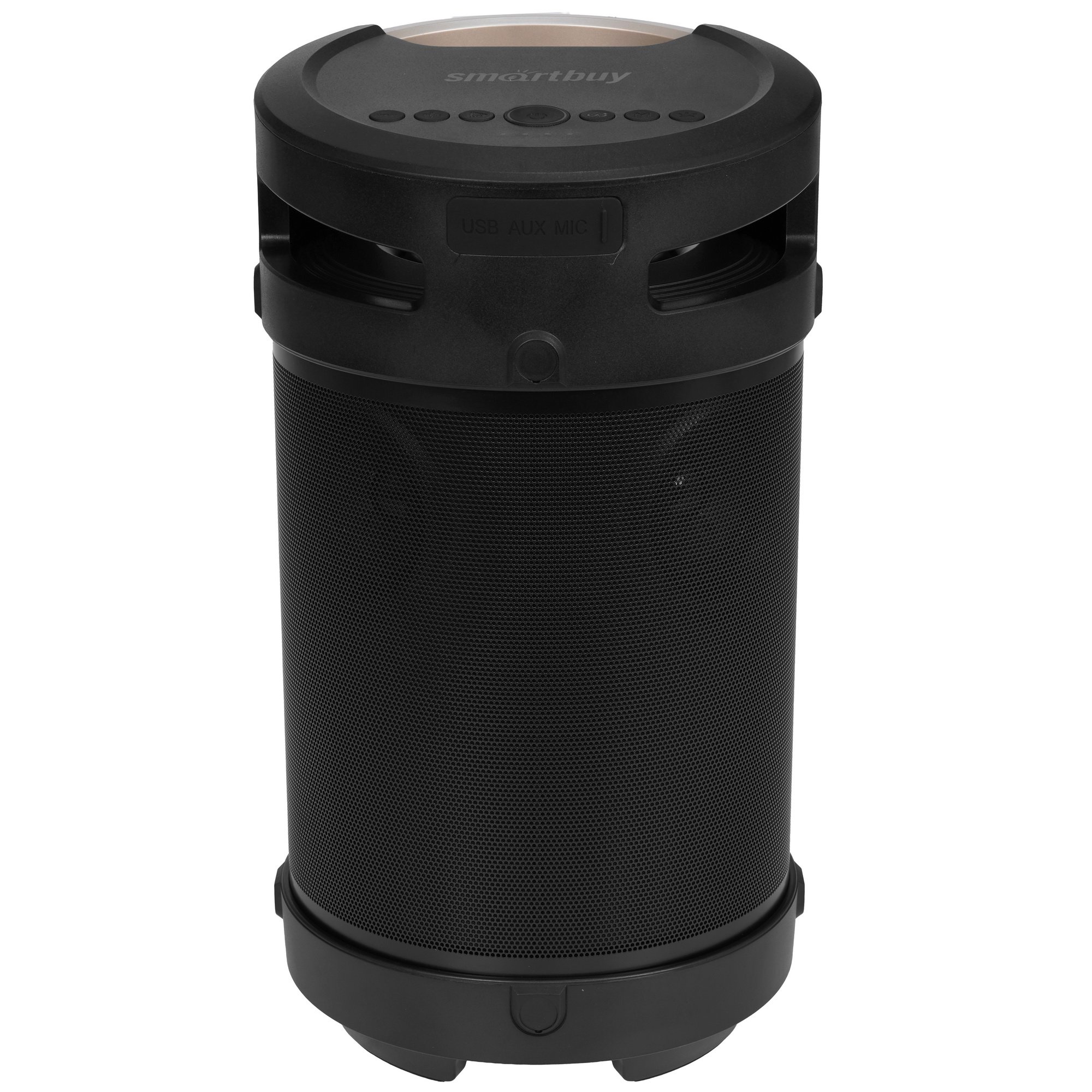 Портативная аудиосистема Smartbuy Z1 черного цвета оснащена 5 динамиками и сабвуфером мощностью 26 Вт. Модель играет музыку в формате MP3, воспроизводит чистый стереозвук на высоких и низких частотах. Модуль Bluetooth позволяет подключать к колонке смартфон и выводить с него любимые треки. Воспроизводить музыку также можно с карты памяти microSD. Устройство поддерживает режим караоке. К нему можно подключить микрофон и петь песни на домашних вечеринках. Встроенное радио может запоминать до 50 станций.