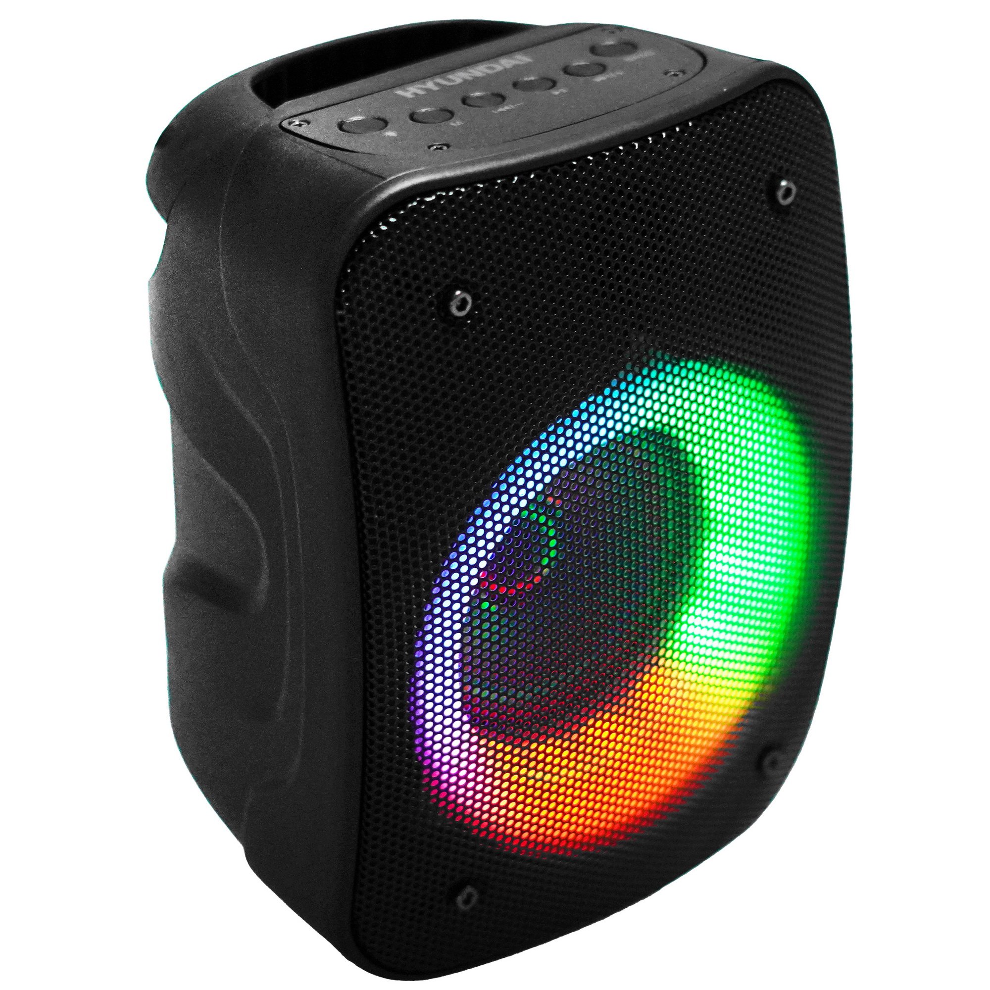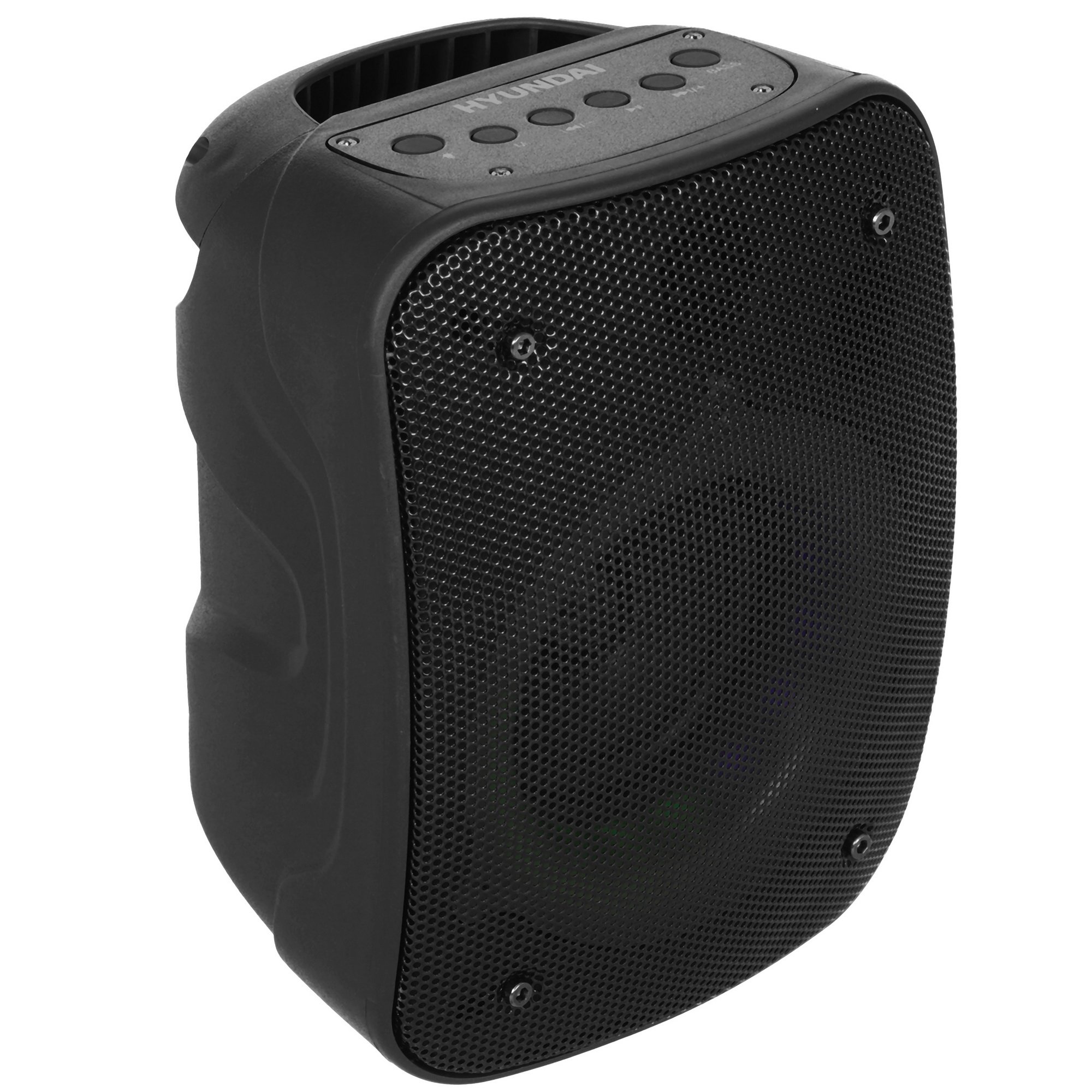 Портативная колонка Hyundai H-PS1005 в корпусе высотой 229 мм обеспечивает четкий звук с глубоким басом благодаря динамику мощностью 20 Вт. Подключение к разным устройствам звукового сигнала возможно с помощью технологии Bluetooth, считывателя карты памяти MicroSD, входа AUX, порта USB, FM-радио. Для караоке есть микрофонный вход 6.35 мм.
