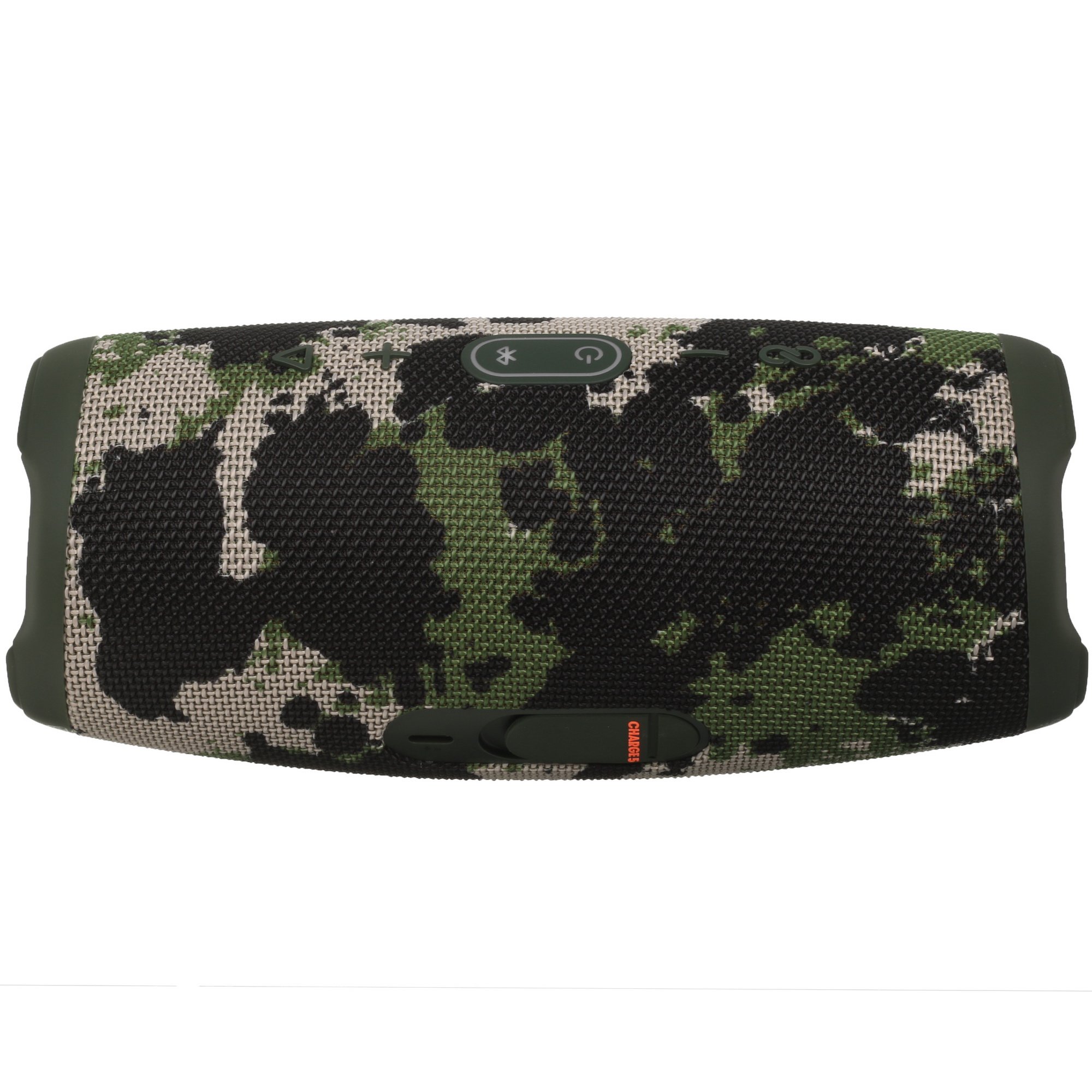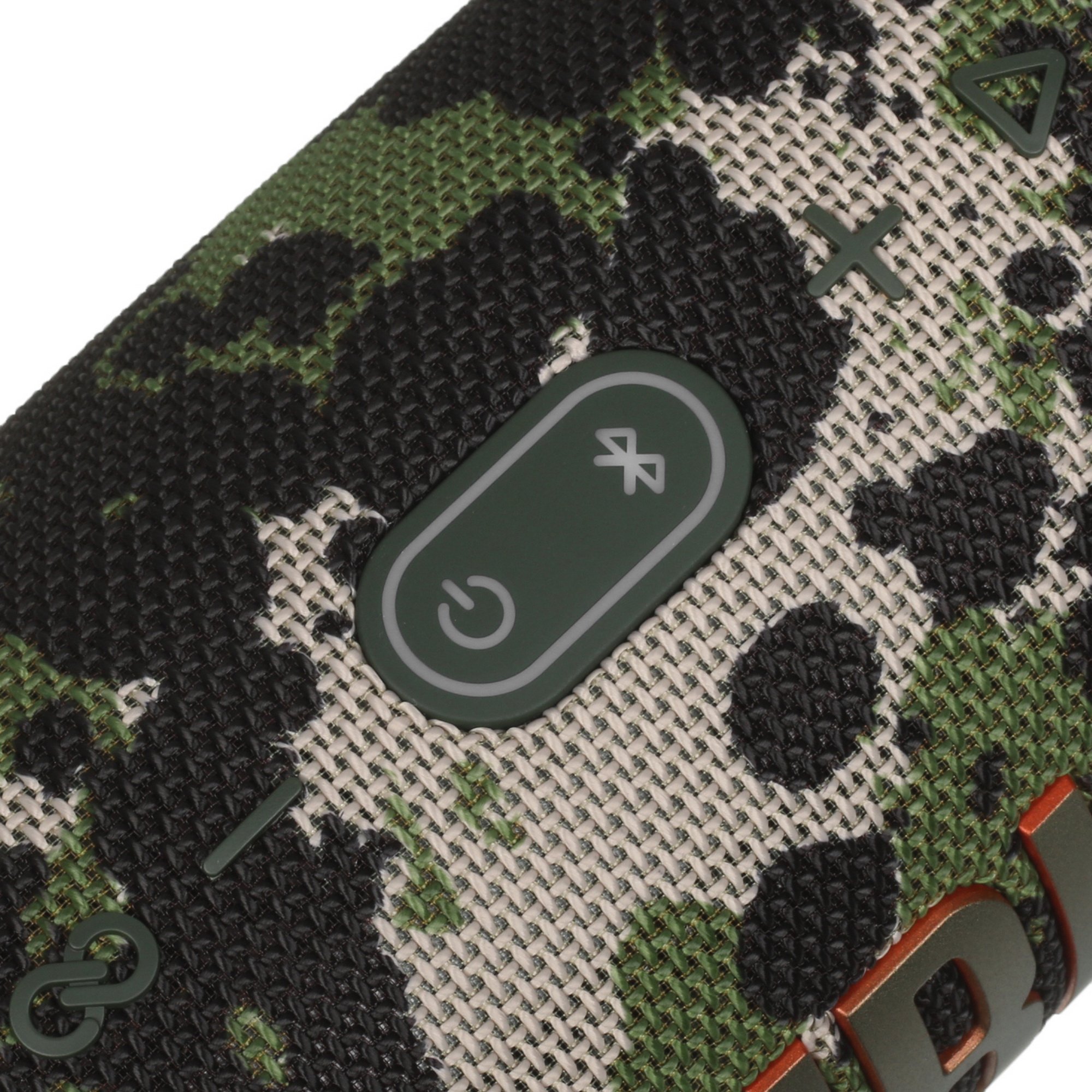Портативная колонка JBL Charge 5 оформлена в цвете хаки. Она выполнена из ударопрочного пластика и обтянута водонепроницаемой тканью. Благодаря прорезиненным элементам устройство не скользит в руках, что сводит к минимуму его падение и повреждение. Соответствие IP67 делает колонку незаменимым атрибутом любого мероприятия на воздухе, а также позволяет использовать ее в помещениях с повышенной влажностью.