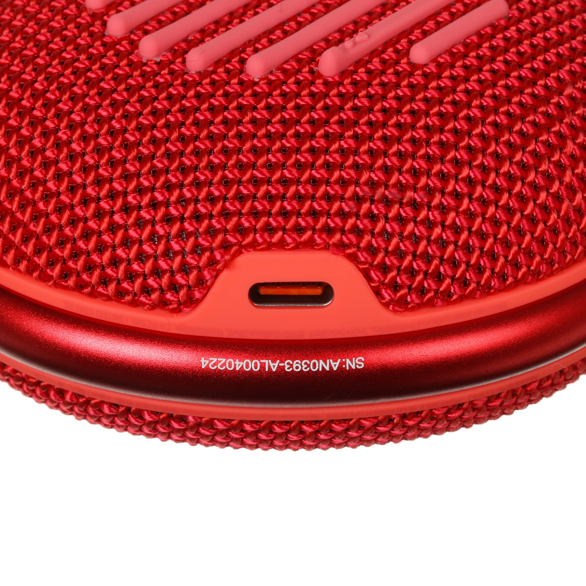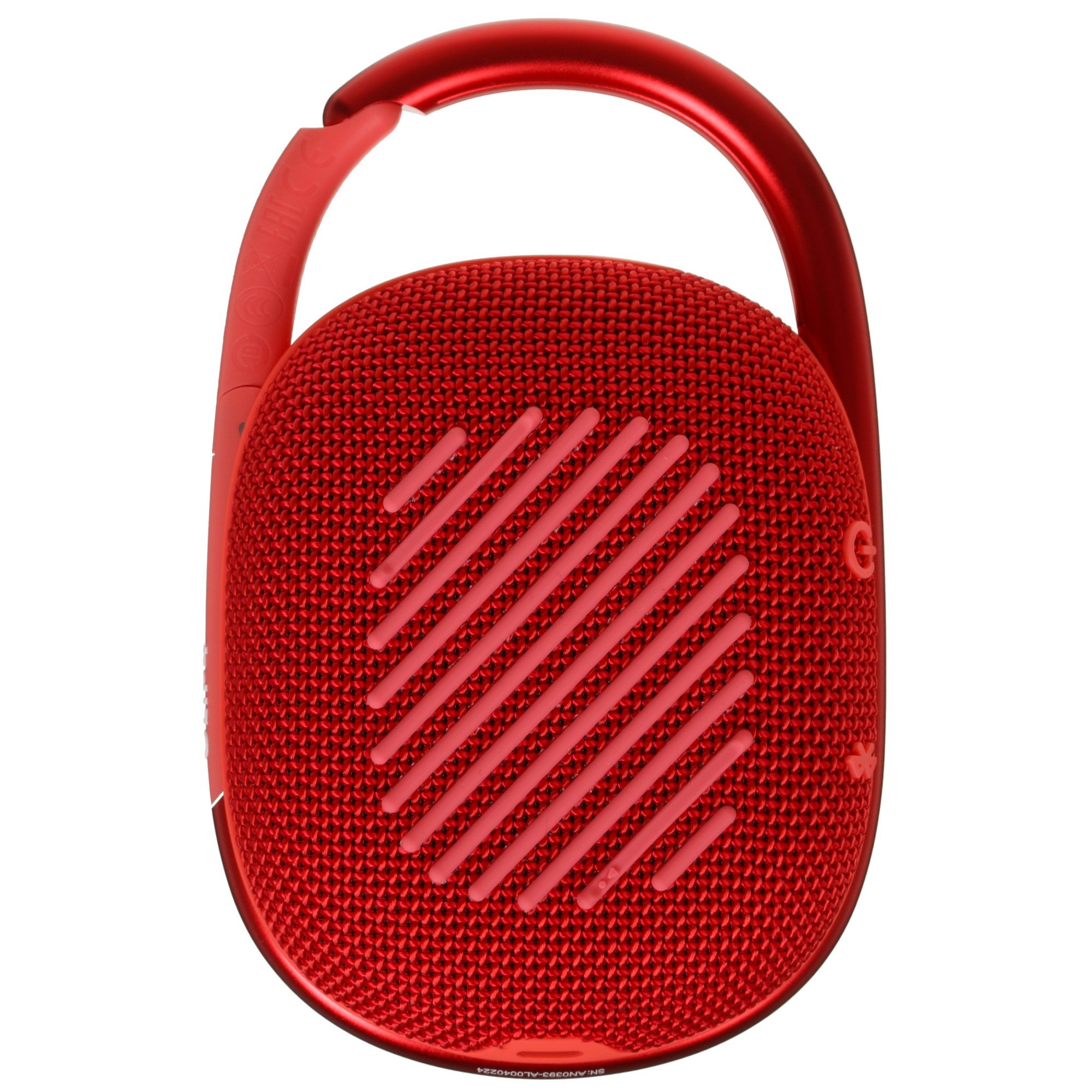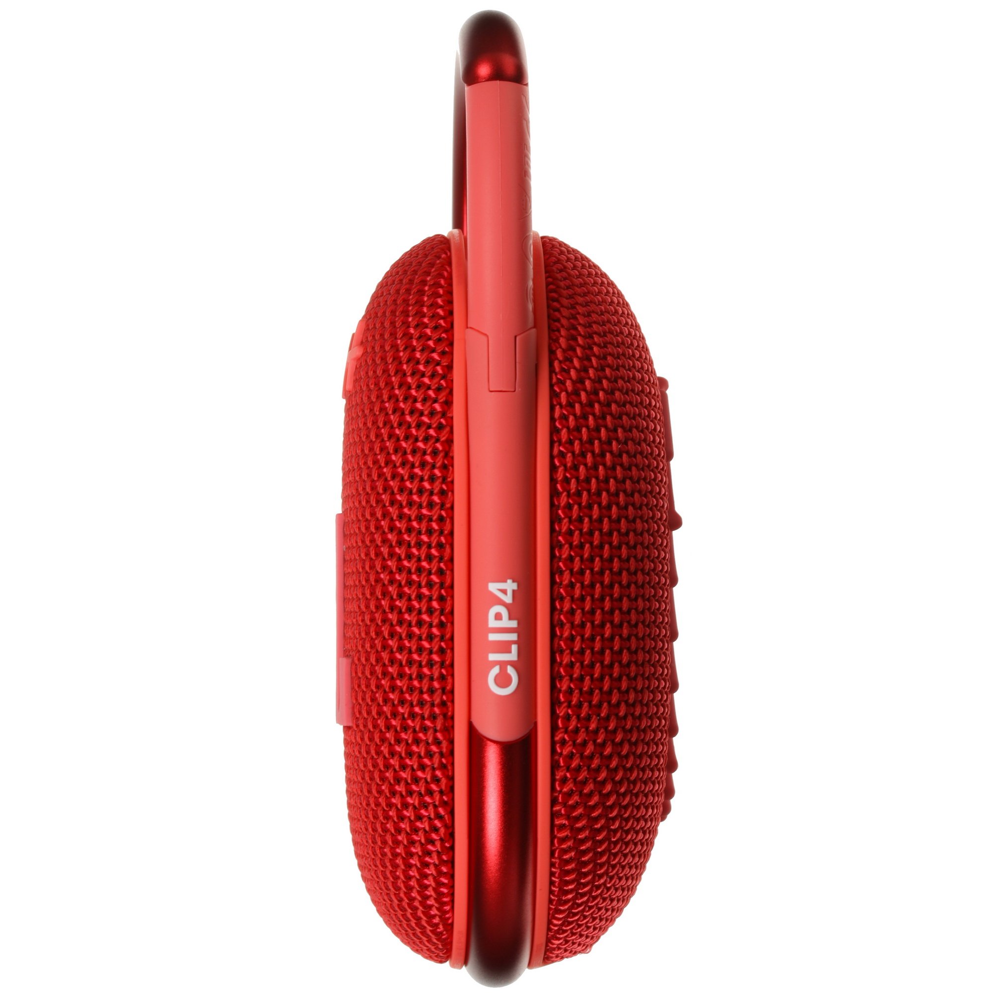 Портативная колонка JBL CLIP 4 представляет собой очень удобное устройство для воспроизведения треков. Она выполнена в пластиковом корпусе красного цвета и предусматривает наличие металлического карабина, при помощи которого происходит крепление изделия к пряжкам, сумкам или рюкзакам. Корпус колонки защищен от попадания внутрь влаги и пыли в соответствии со стандартом IP67. На корпусе устройства находятся кнопки активации Bluetooth, регулировки громкости, а также плей/пауза.