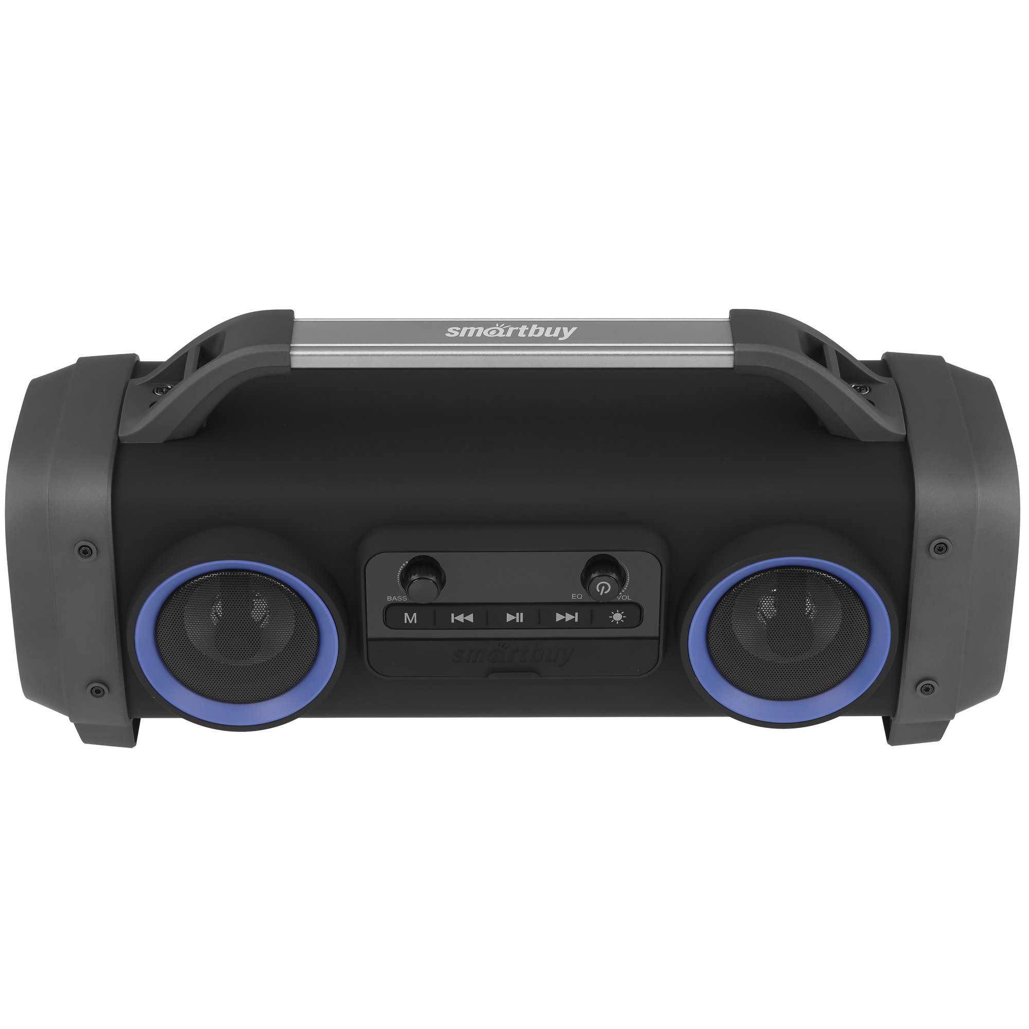 Портативная колонка Smartbuy VALKYR представлена в черном пластиковом корпусе с подсветкой, дисплеем и ручкой для удержания. Стереосистема с сабвуфером и мощностью 22 Вт выдает чистый и громкий звук. Модель дополнена радио, эквалайзером и функцией караоке.