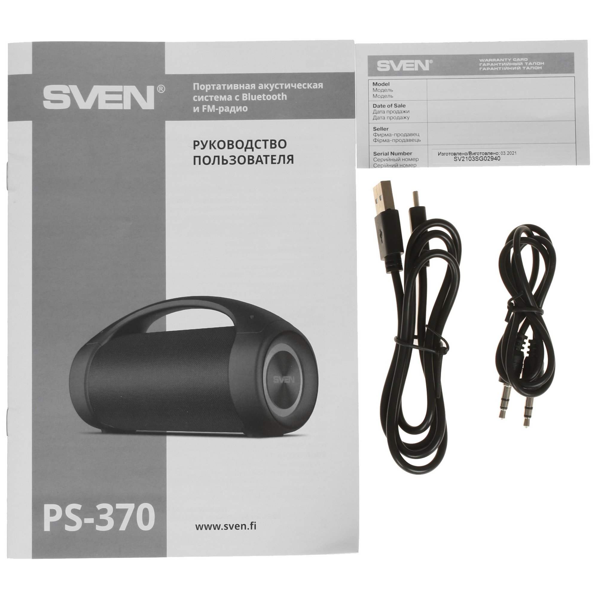 Колонка портативная Sven АС PS-370 черный 40W 2.0 BT