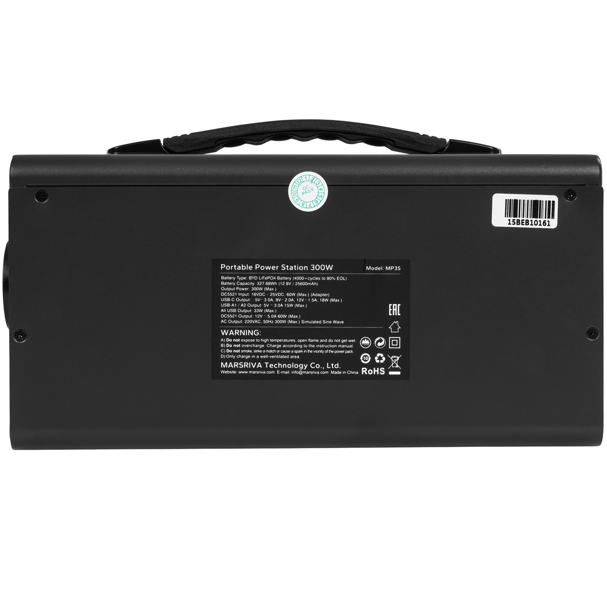 Портативная зарядная станция MARSRIVA MP3S – умное и компактное решение для автономного энергоснабжения в быту, в дороге или на природе. С емкостью аккумулятора 25600 мА/ч и номинальной мощностью 300 Вт MP3S обеспечивает питание ноутбуков, камер, освещения, вентилятора и даже небольшого холодильника. В основе устройства лежит безопасная и долговечная литий-железофосфатная BYD LiFePO₄ батарея с ресурсом свыше 4000 циклов, устойчивая к старению, перегреву и механическим нагрузкам.
