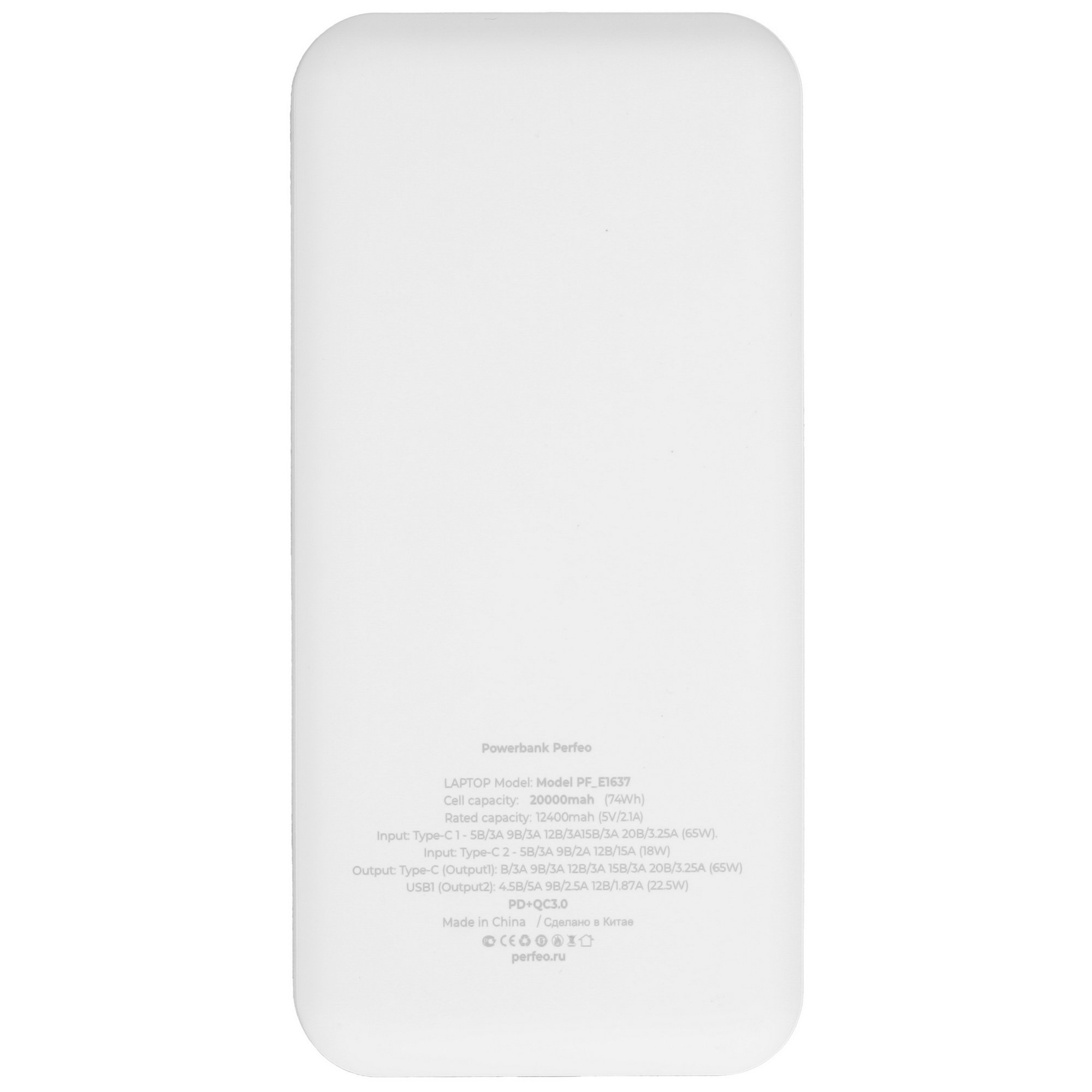Портативный аккумулятор Perfeo Powerbank LAPTOP 65W 20000 mAh/LED дисплей/PD+QC 3.0/2Type-C/1 USB,max 65W/белый
