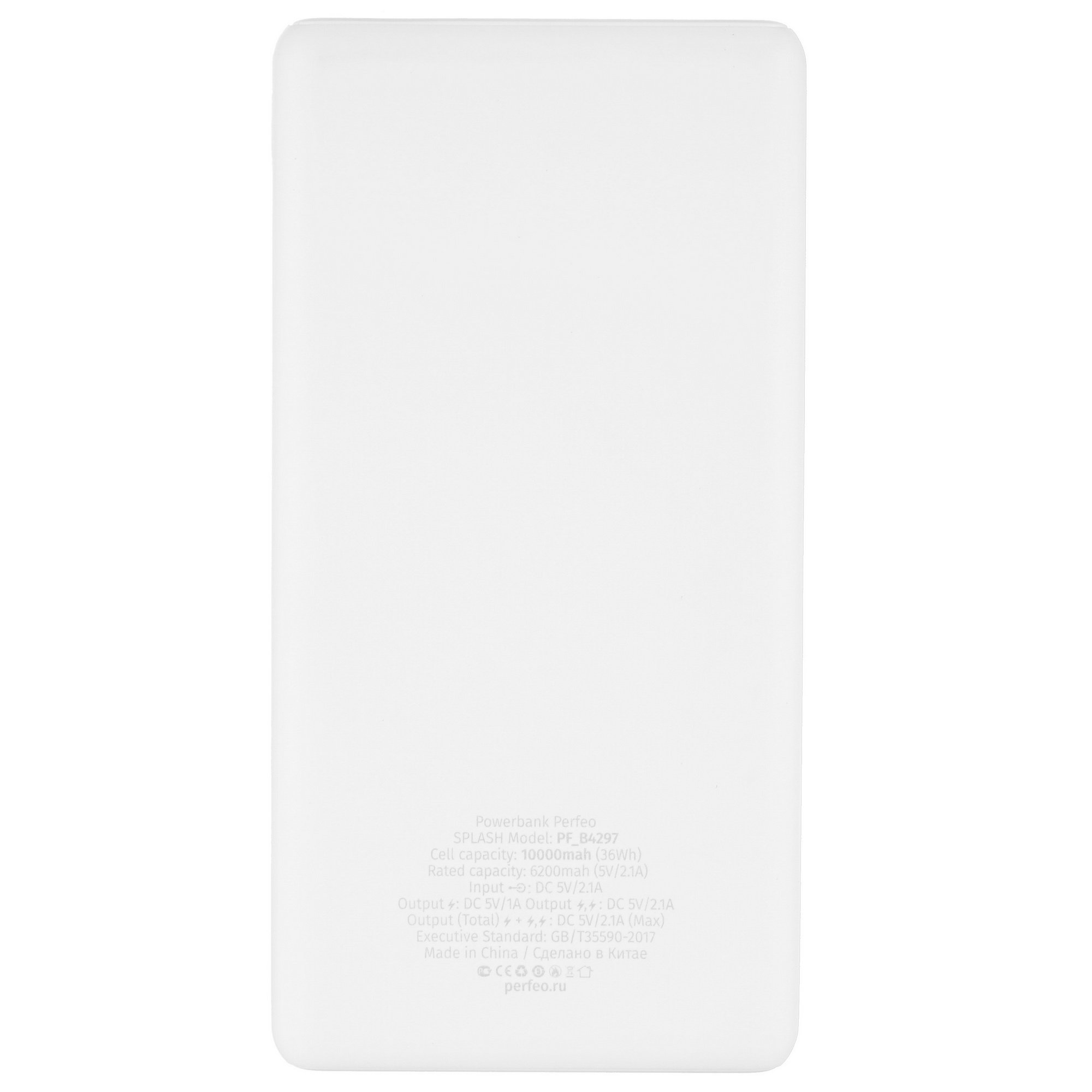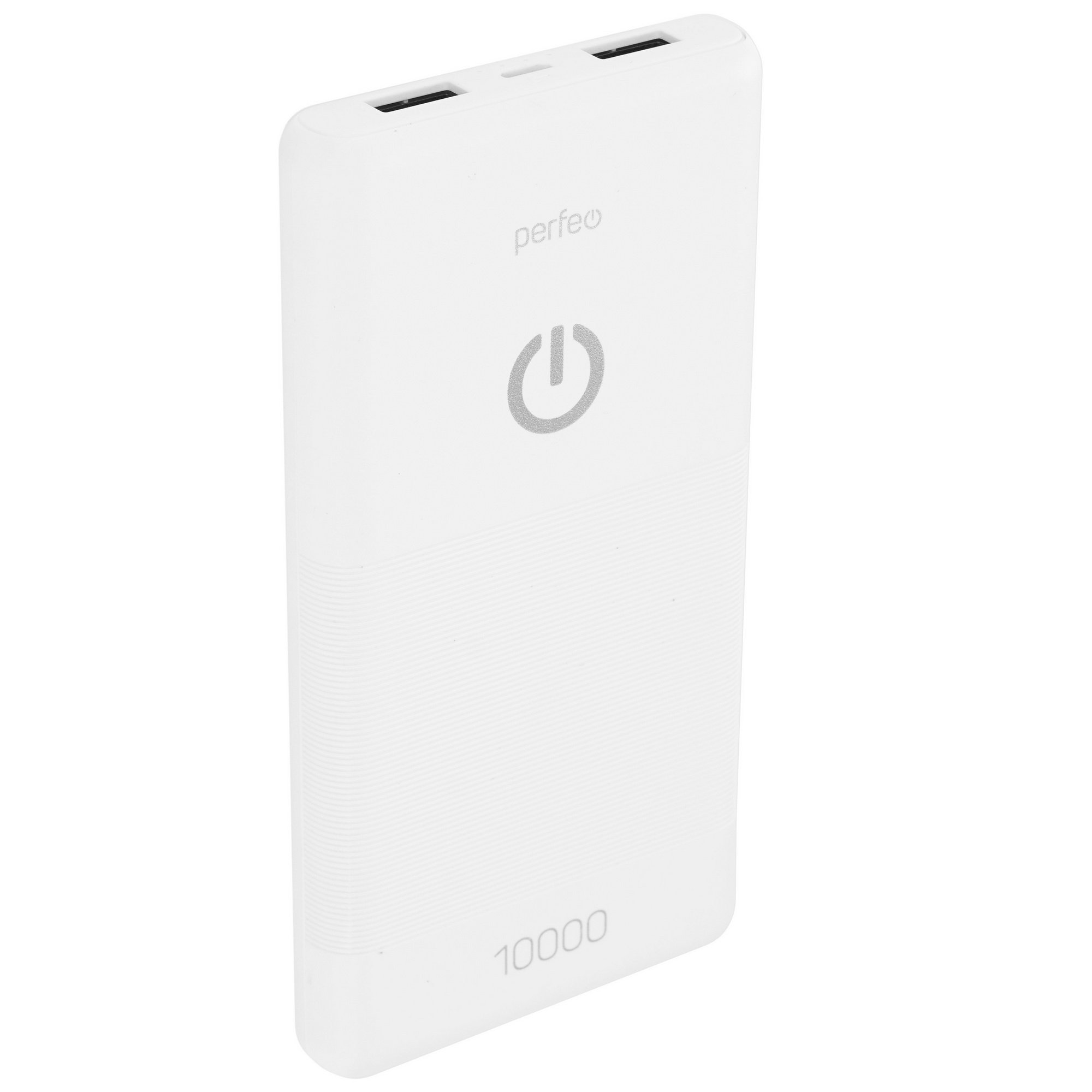 Портативный аккумулятор Perfeo 10000 mah + Micro usb /In Micro usb /Out USB 1 А, 2.1A/ белый (PF_B4297)