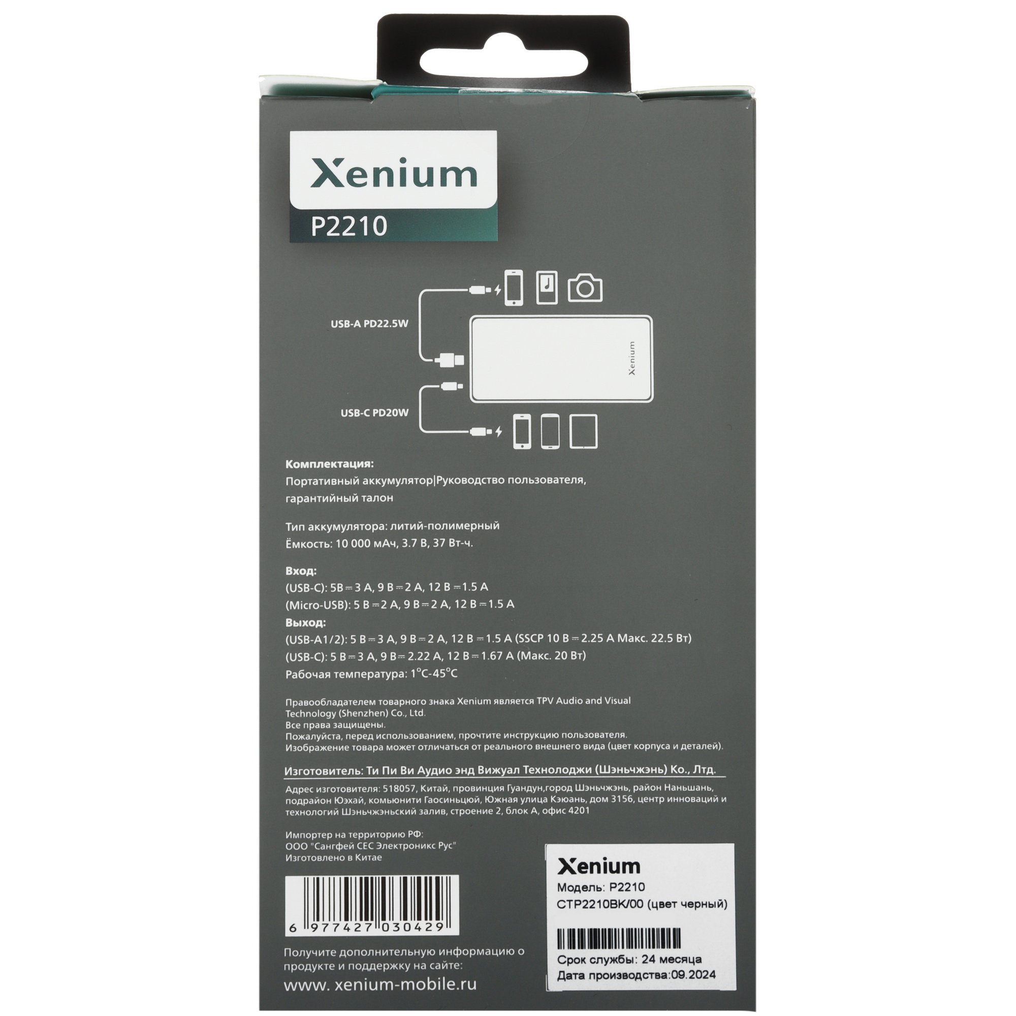 Портативный аккумулятор 10000 mAh Xenium P2210 — это компактное и мощное устройство, которое станет незаменимым помощником в повседневной жизни. LED-экран для индикации уровня заряда, что позволяет всегда быть в курсе оставшейся энергии. Высококачественные материалы, устойчивые к падениям и ударам, обеспечивающие долговечность и надежность.