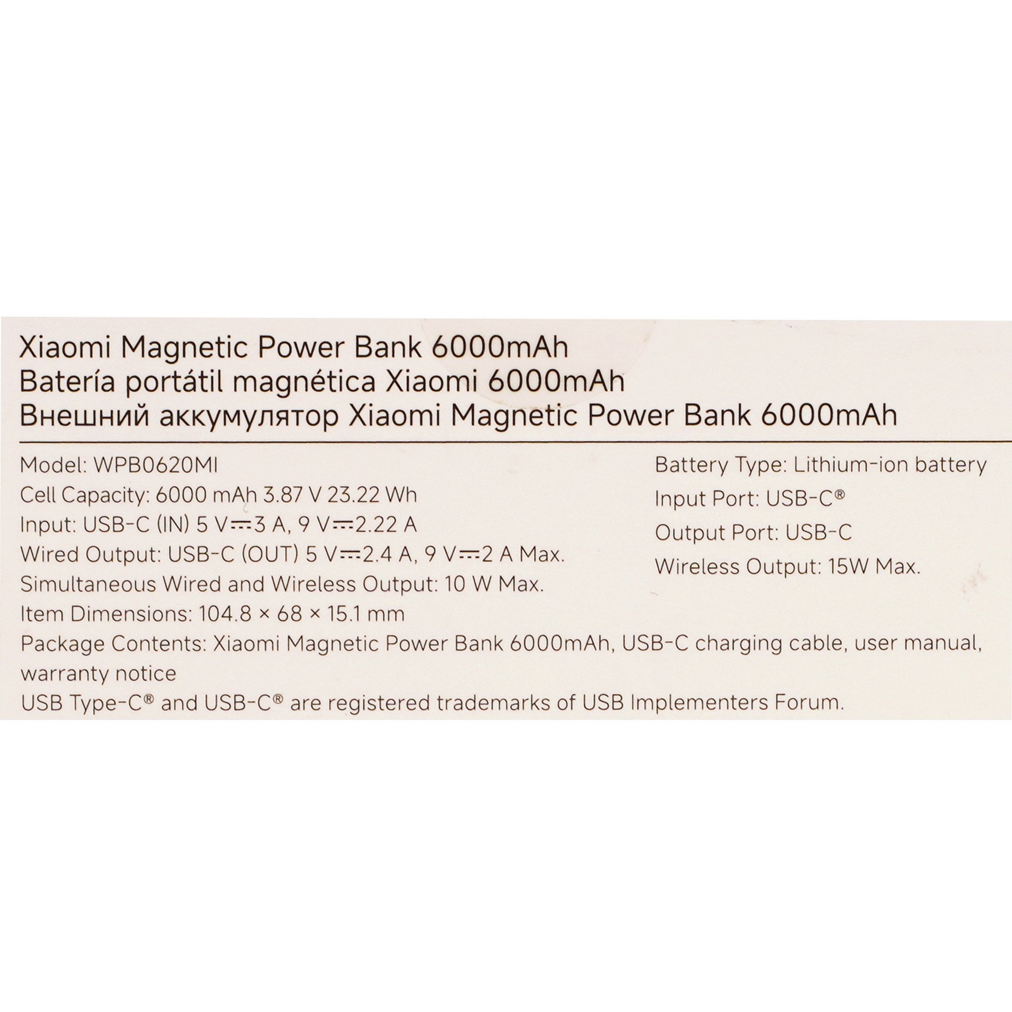 Портативный аккумулятор Xiaomi Magnetic Power Bank 6000mAh GL WPB0620MI бежевый (BHR9074GL)