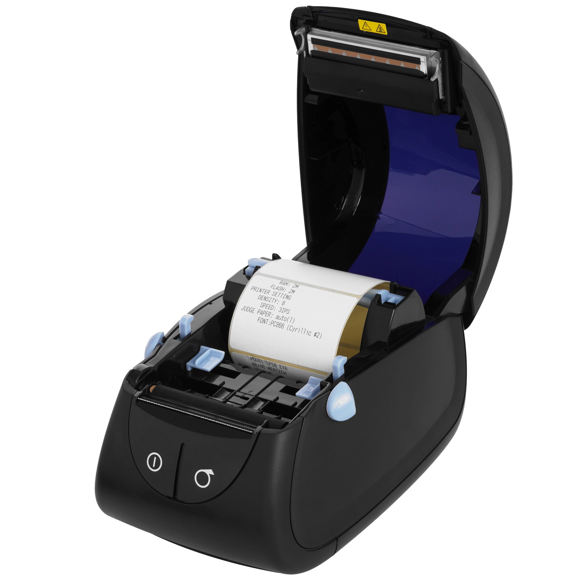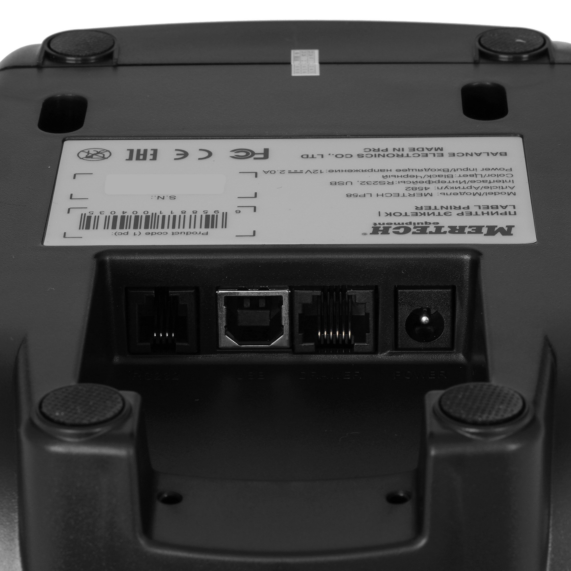 Mertech MPRINT LP58 EVA поддерживает работу с компьютером и другими устройствами под управлением Mac OS и Windows. В корпусе есть порты для подключения к ПК RS-232 и USB. Принтер для прямой печати ценников и этикеток с разрешением 203 dpi четко отображает мелкий текст, цифры, QR- и разные типы штрихкодов.